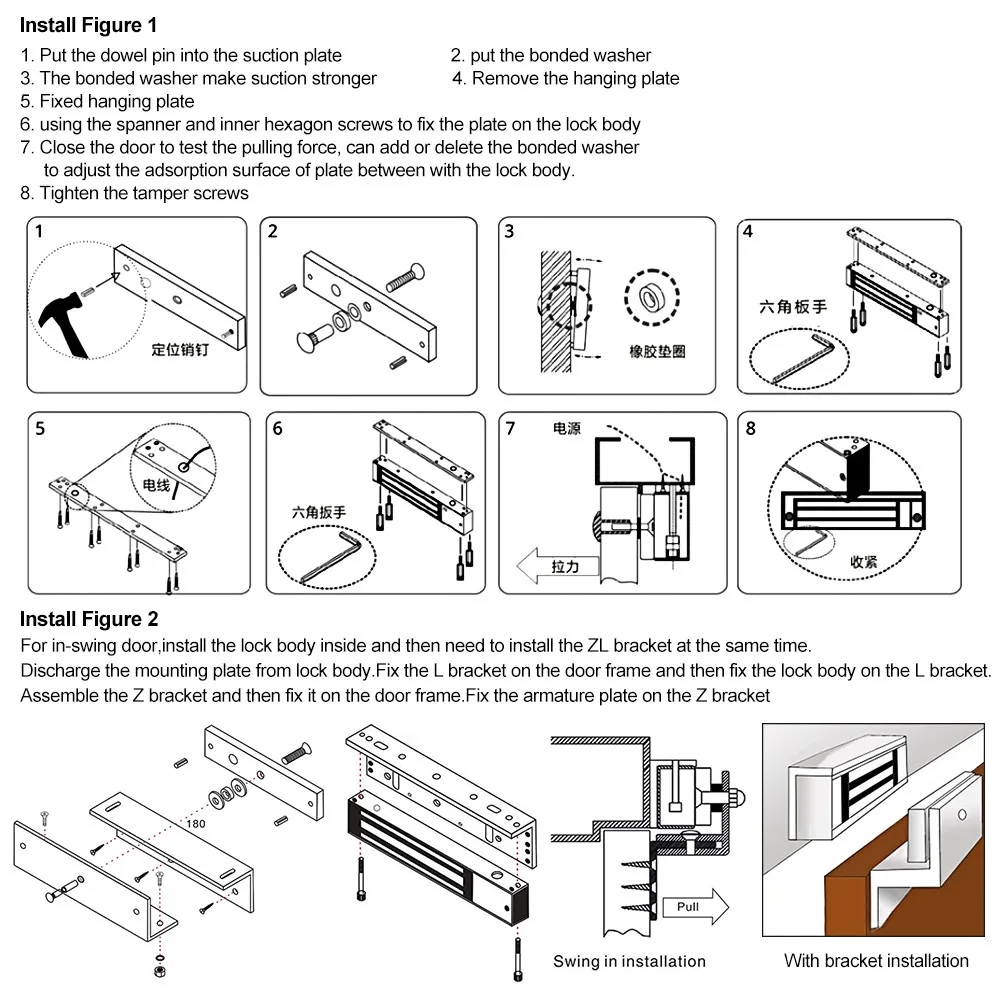 Для распашной двери Установите корпус замка внутри, а затем нужно установить кронштейн ZL одновременно.