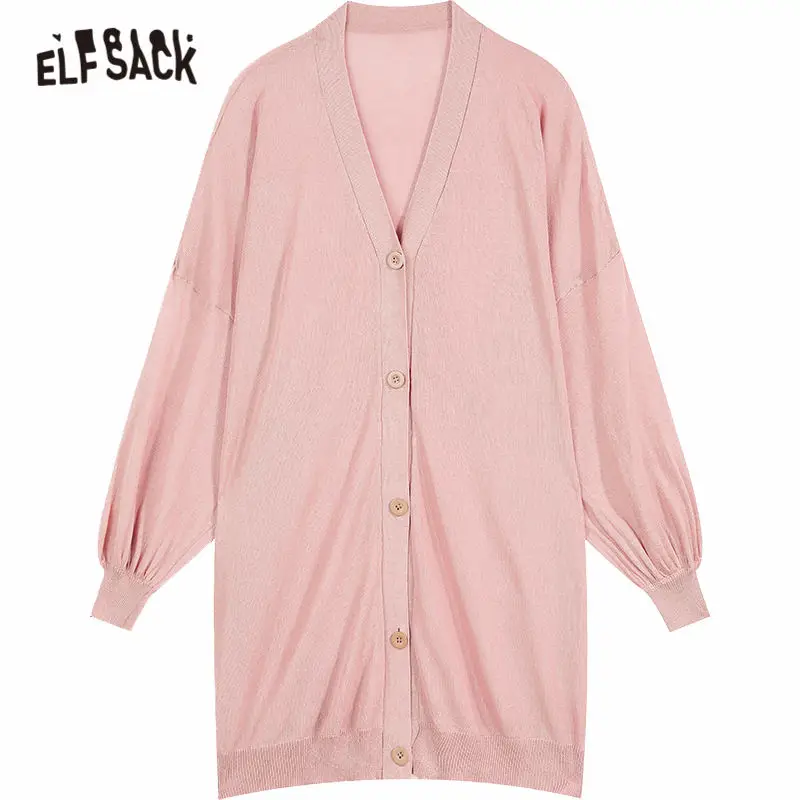 Женский однобортный Кардиган ELFSACK, однотонный вязаный Повседневный Кардиган карамельных цветов с рукавами-фонариками в Корейском стиле, весна 2020