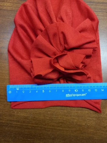 На фото бант выглядит более пышным, а шапка более плотной. По факту ткань в один слой и бант почти сразу чуть оторвался. В целом все хорошо, шапка понравилась