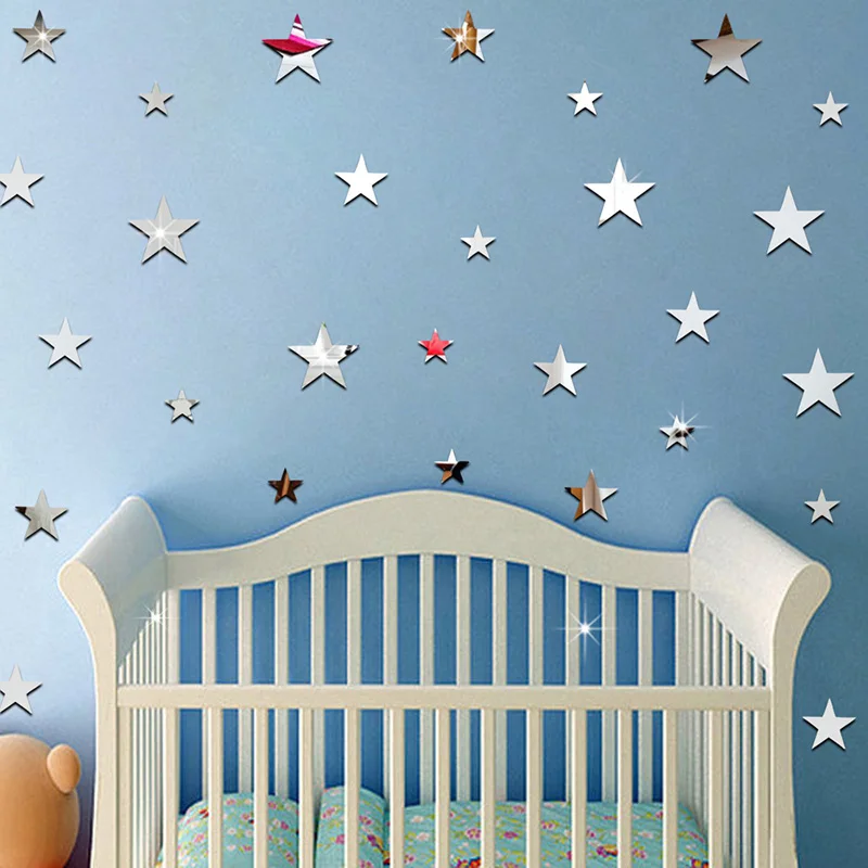 20 шт. мини 3D зеркальные наклейки на стену, акриловые наклейки в виде звезд для детской комнаты, декоративные наклейки золотого и серебряного цвета для гостиной, художественные акриловые фрески