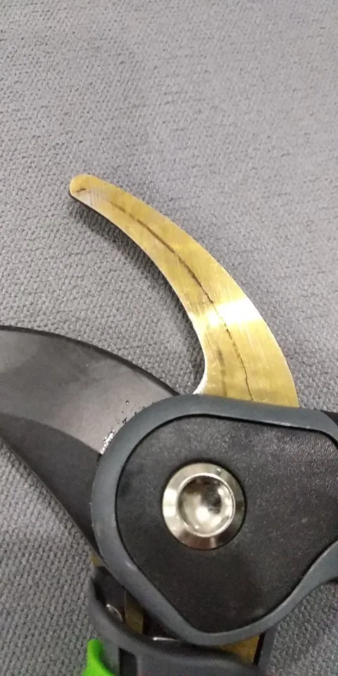 Позолоченная часть не совсем ровная. Чувствуется, как секатор слегка закусывает. На позолоченной части потёртость. Качество не очень хорошее. Попробуйте купить у другого продавца, чуть подороже.