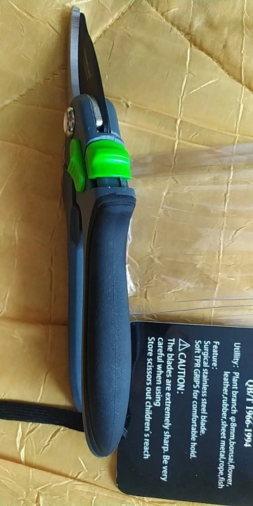 описание довольно точное. режущее лезвие сделано из хирургической стали. принцип работы- рубка, а не резка. твердые ветки до 8 мм рубит очень легко, не заминает и не рвет. рукоятки удобные с регулируемой степенью открытия: под женскую и мужскую ладони. есть верёвочная петелька, чтобы одевать на запястье. доставка курьером до двери в мо за месяц