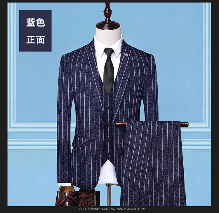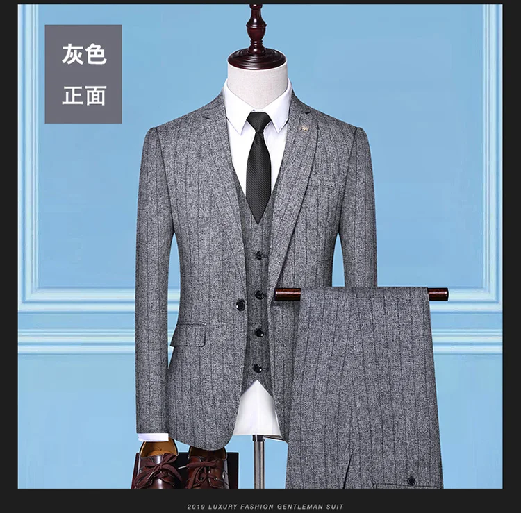 Мужской костюм в полоску из трех предметов, большой размер 4XL, весна-осень 2020, мужской костюм джентльмена в британском стиле