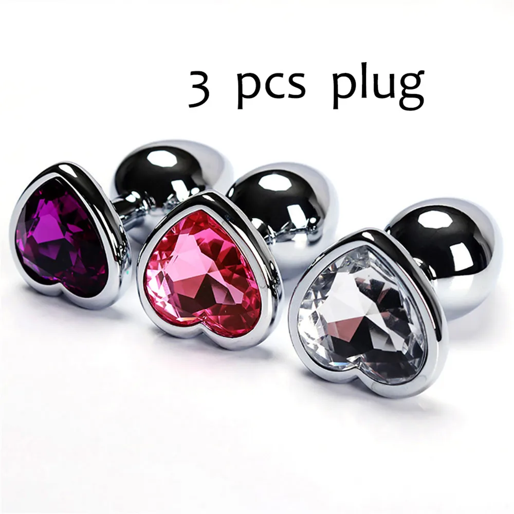 Металлическая Анальная пробка в форме сердца, секс-игрушки, анальная пробка из нержавеющей стали с гладкой поверхностью, хвост, кристалл, ювелирный тренажер для женщинмужчин, анальный фаллоимитатор