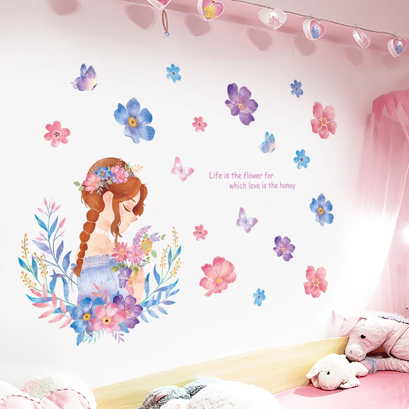 Милые розовые акварельные наклейки на стену DIY мультфильм девушка ...