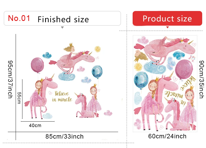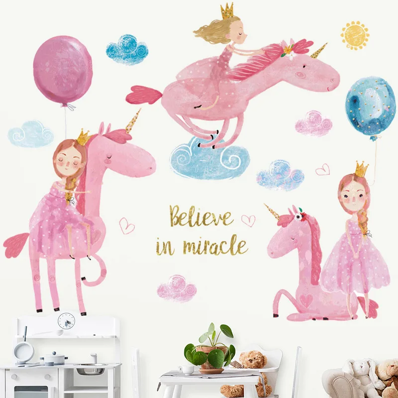 Мультяшные единороги принцессы наклейки на стену для детской комнаты, детского сада, девочек, декор комнаты, экологичные виниловые наклейки на стены, художественный Декор для дома