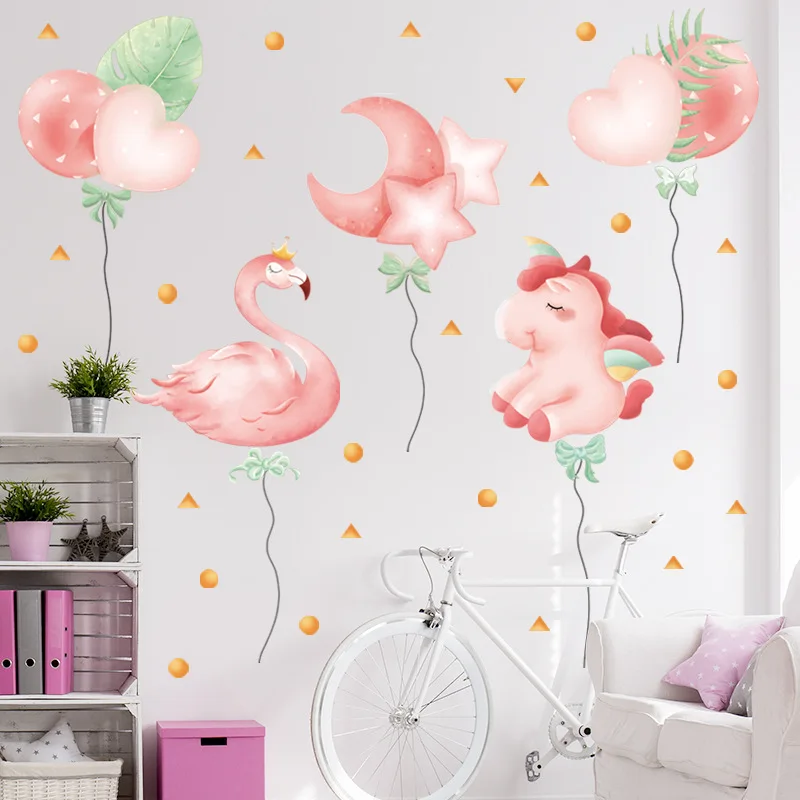 Розовый Единорог наклейки на стену для девочек, спальни, декор стен...