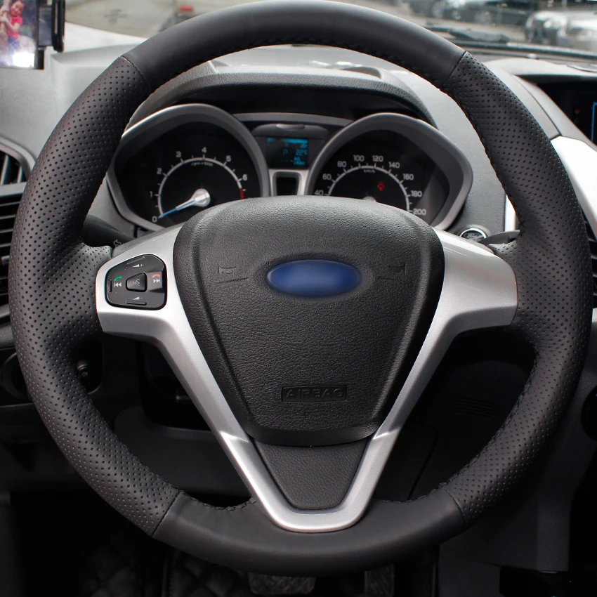 Черная искусственная кожа Чехол рулевого колеса автомобиля для форд фиеста 2008 2009 2010 2011 2012-2017 EcoSport 2014 2015 2016 2017