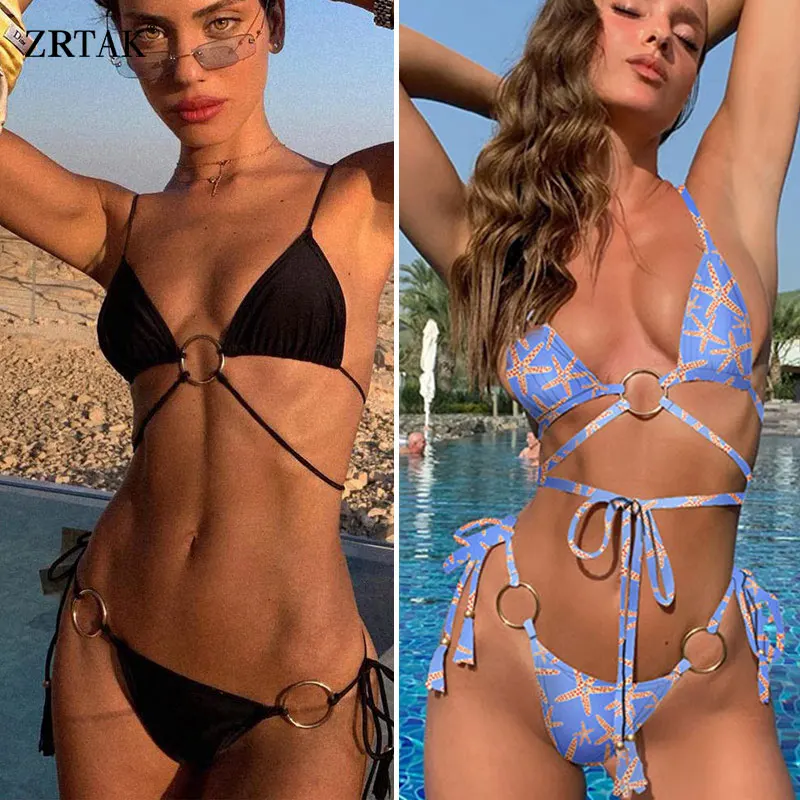 Zrtak 2021 микро бикини сексуальный купальник на шнуровке женский купальник с принтом в стиле пэчворк женский купальный костюм комплект бикини на шнуровке