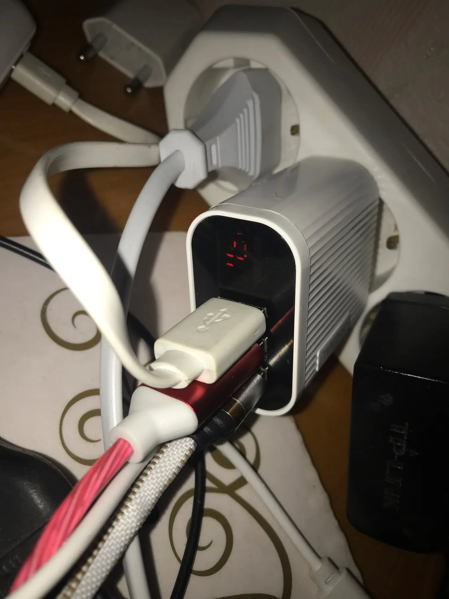 Показывает ток заряда на 0,5А больше, чем фактический. В отличии от штатного зарядного устройства не поддерживает функциею "Быстрая зарядка". Тянет на обычном заряде 3 устройства без проблем. Можно брать. Доставка месяц в Днепр.