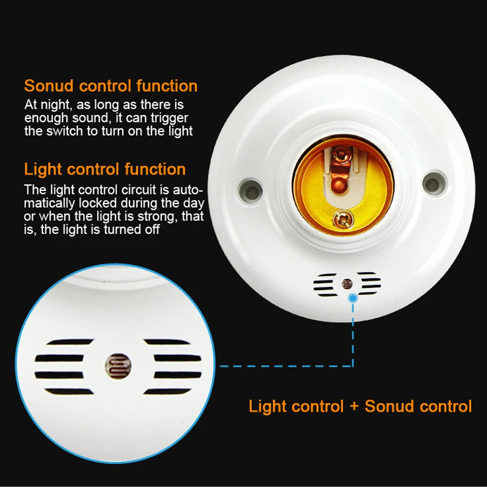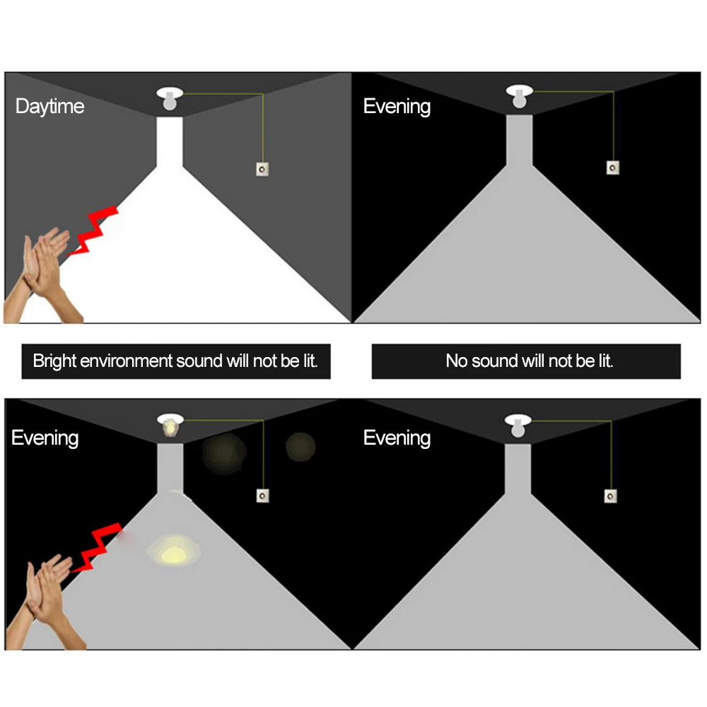 Двойной Датчик управления звуком и светильник: управление звуком + светильник, выключение в течение дня, включение в ночное время, безопасность и энергосбережение