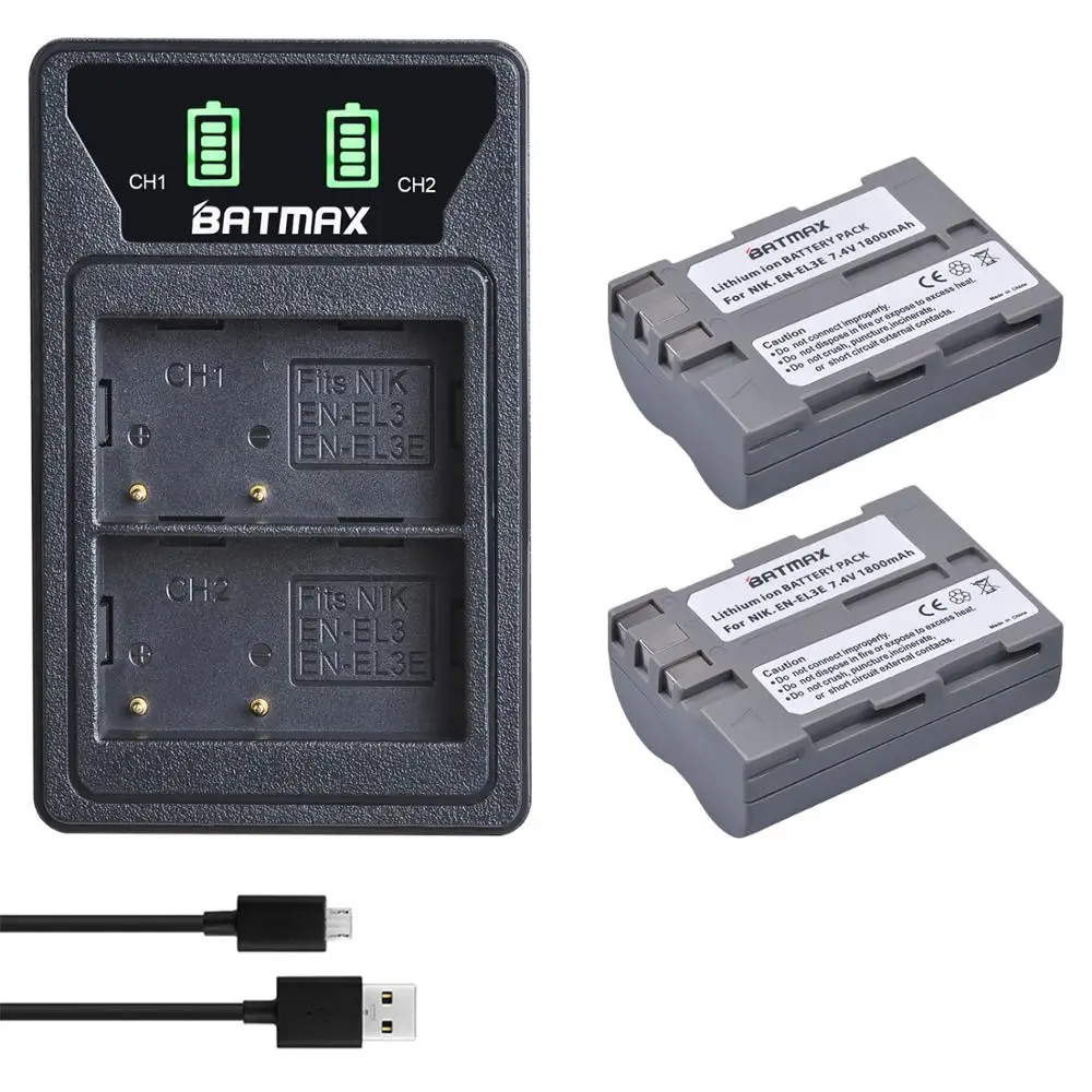 Аккумуляторная батарея Batmax 1800 мАч EN-EL3E EN-EL3 + двойное зар...