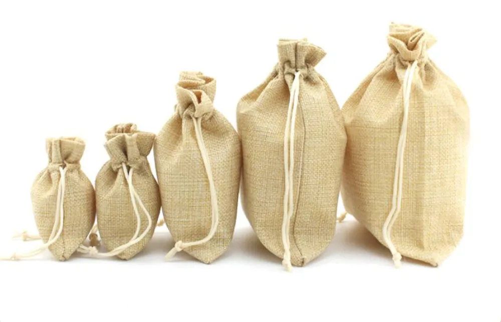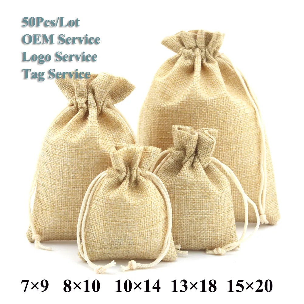Подарочные пакеты и мешочки, 50 шт.лот, разноцветные мешочки из натуральной мешковины для свадебных конфет, мешочек для печенья, джутовые мешочки на шнурке, различные размеры