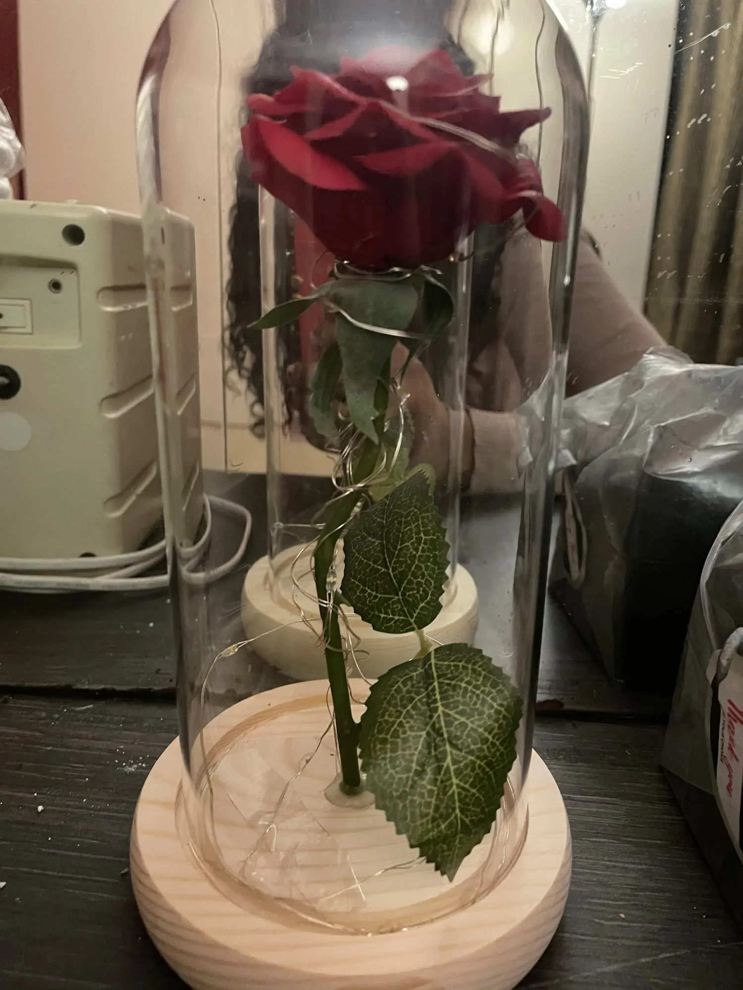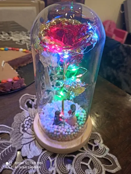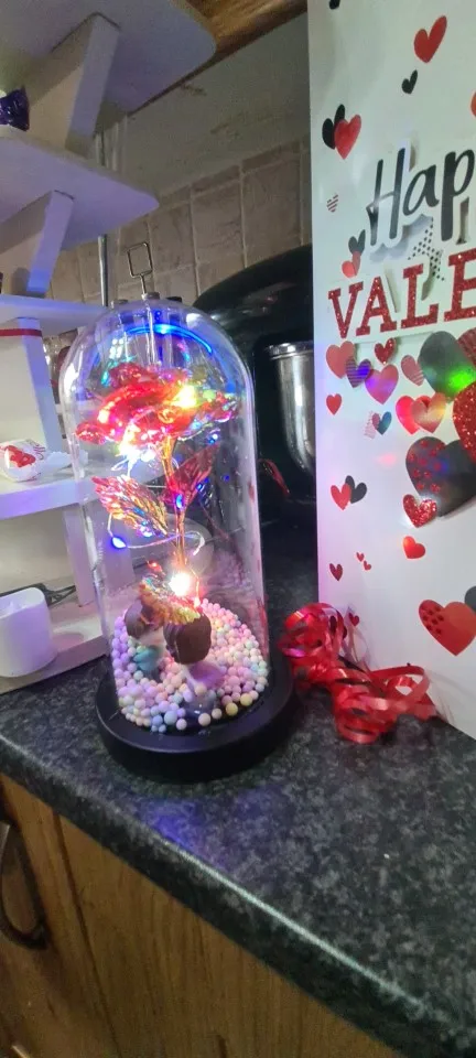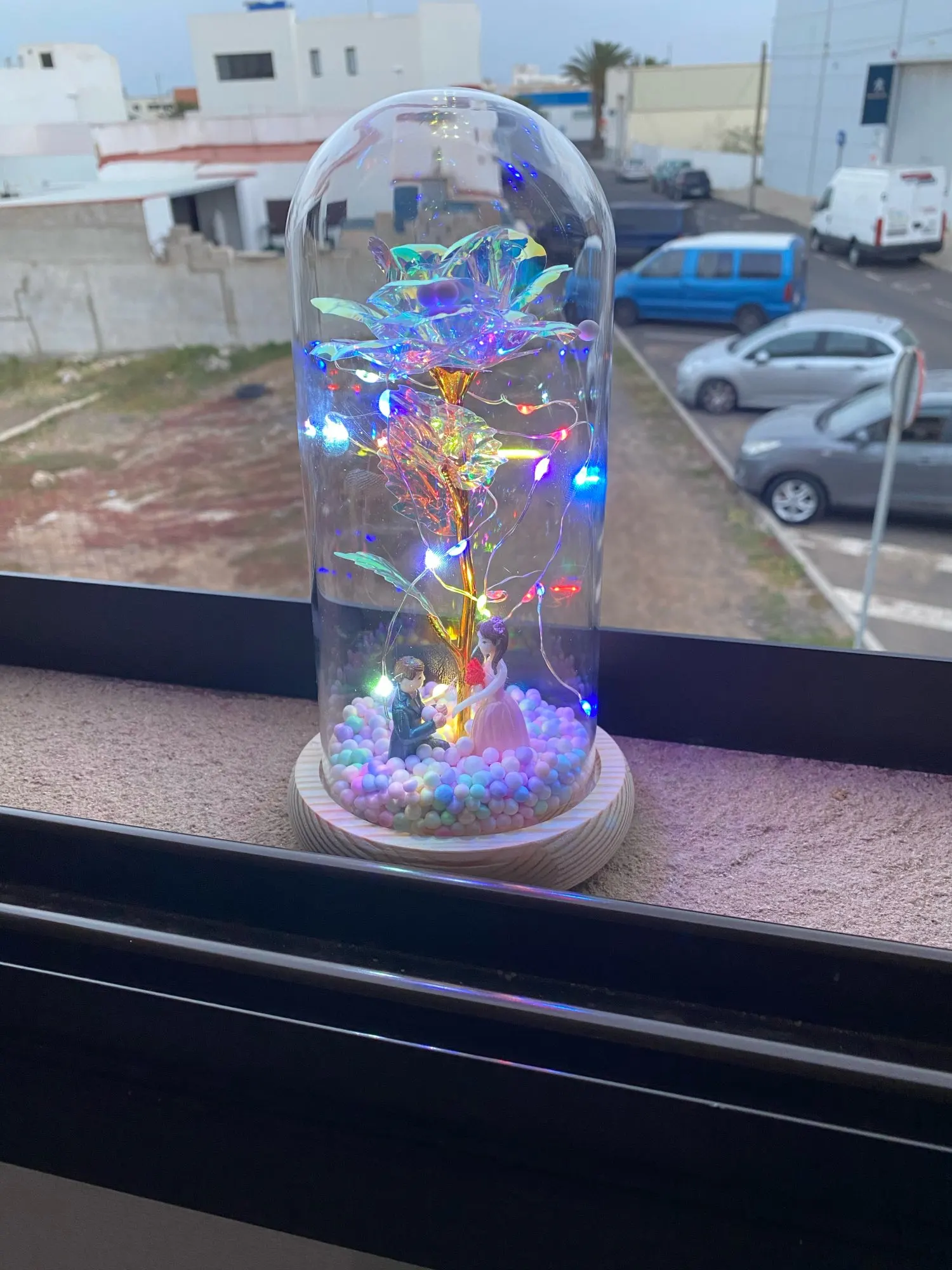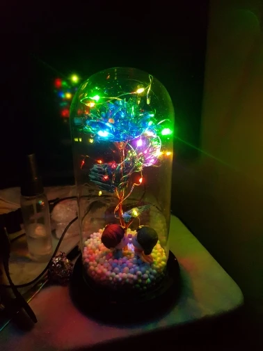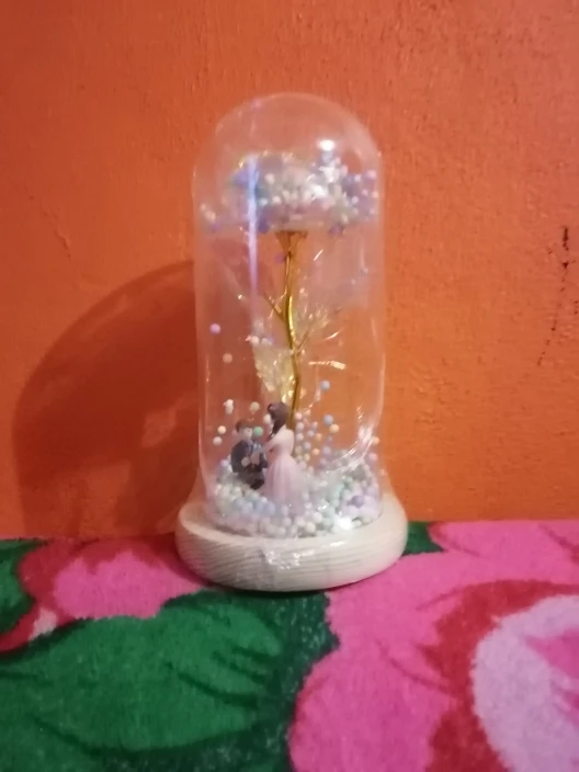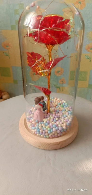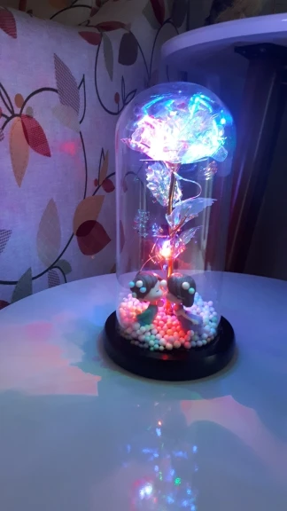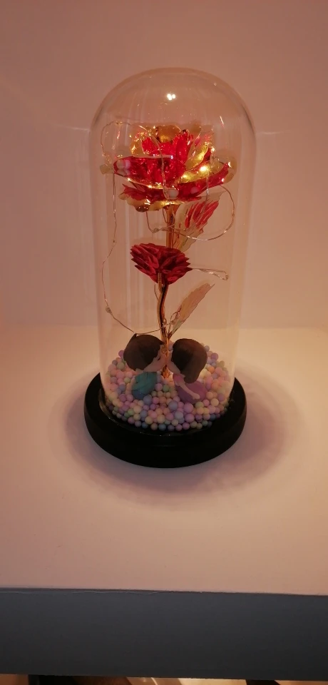 Это красиво, я не ожидал, что это так красиво .. Супер хорошо упакованный, свет можно поставить, как вы хотите. Они идут на маленькие батареи. Я рекомендую это 100%, и доставка прибыла очень быстро и вовремя для королей. Это красивый цветок ..