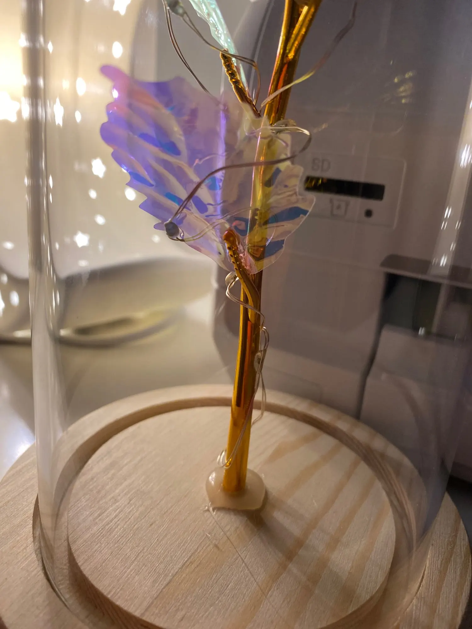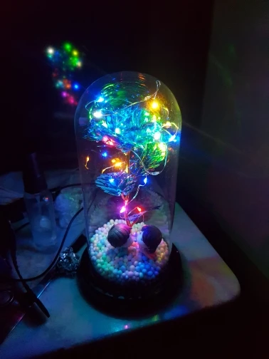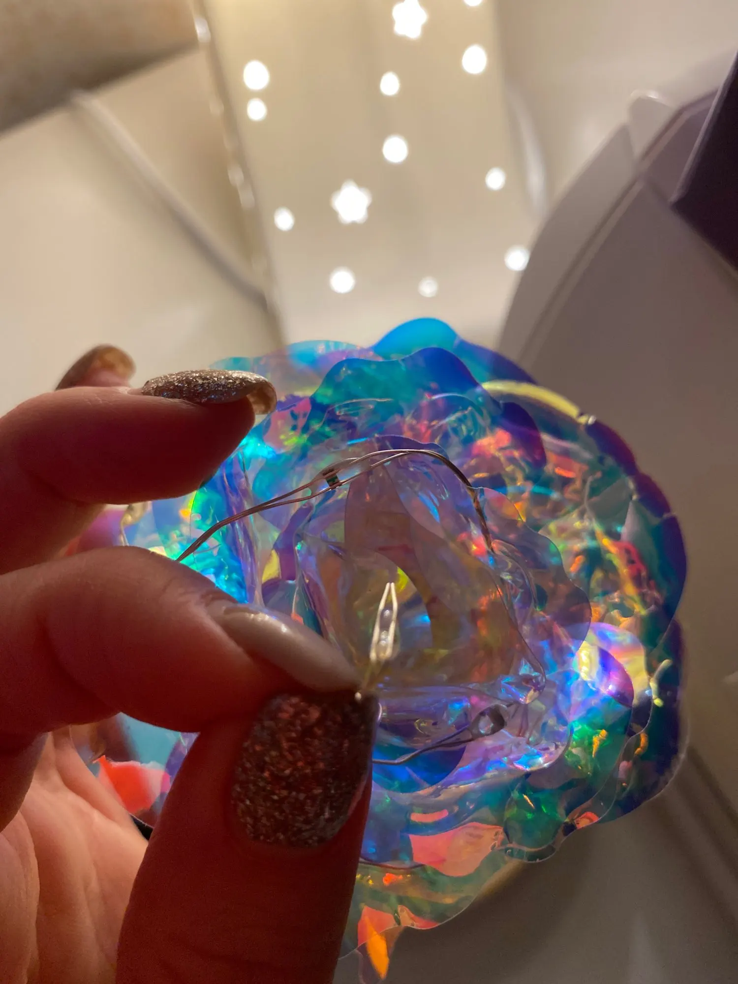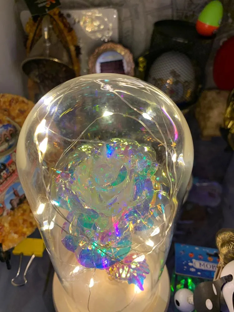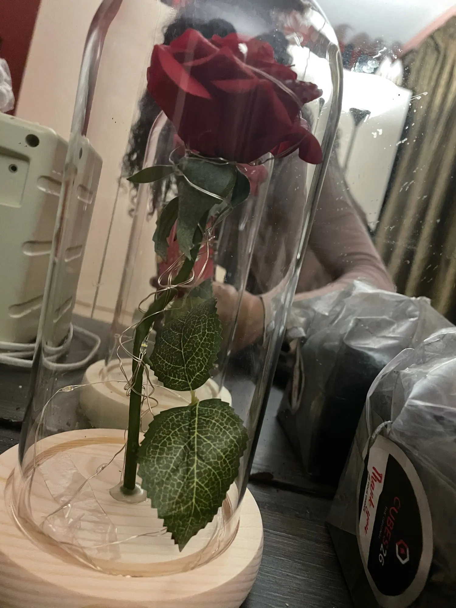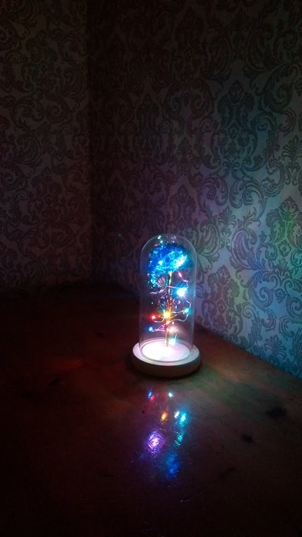 Это красиво, я не ожидал, что это так красиво .. Супер хорошо упакованный, свет можно поставить, как вы хотите. Они идут на маленькие батареи. Я рекомендую это 100%, и доставка прибыла очень быстро и вовремя для королей. Это красивый цветок ..