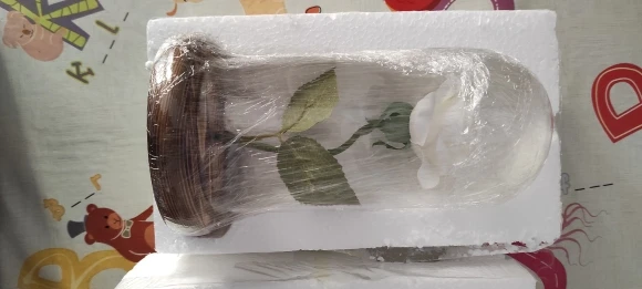 Розочка супер, описание точное, пришло в пенопласте и плёнке. все целое, колба стекло. рекомендую вам