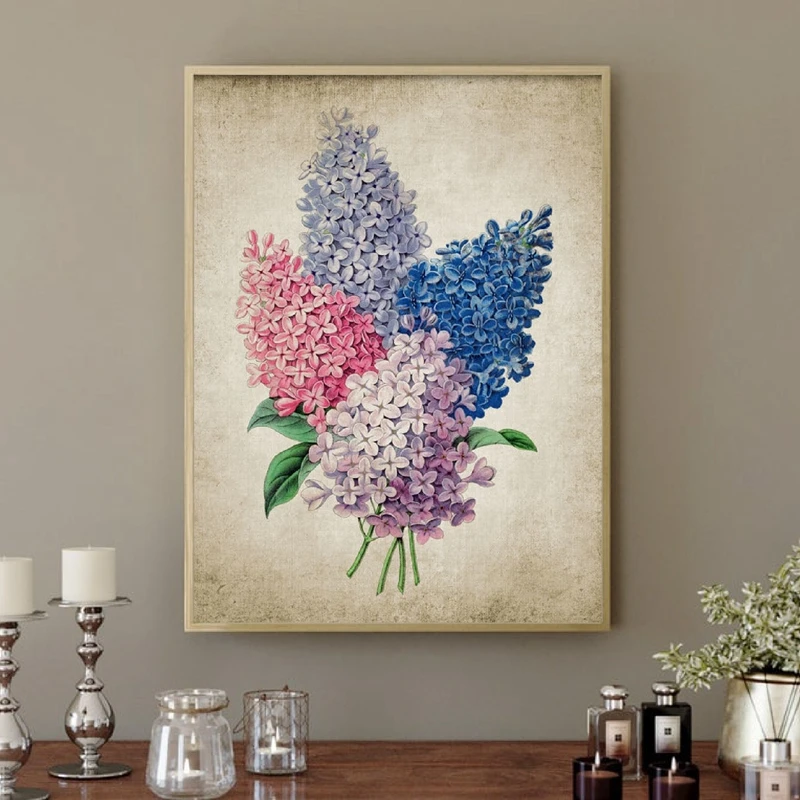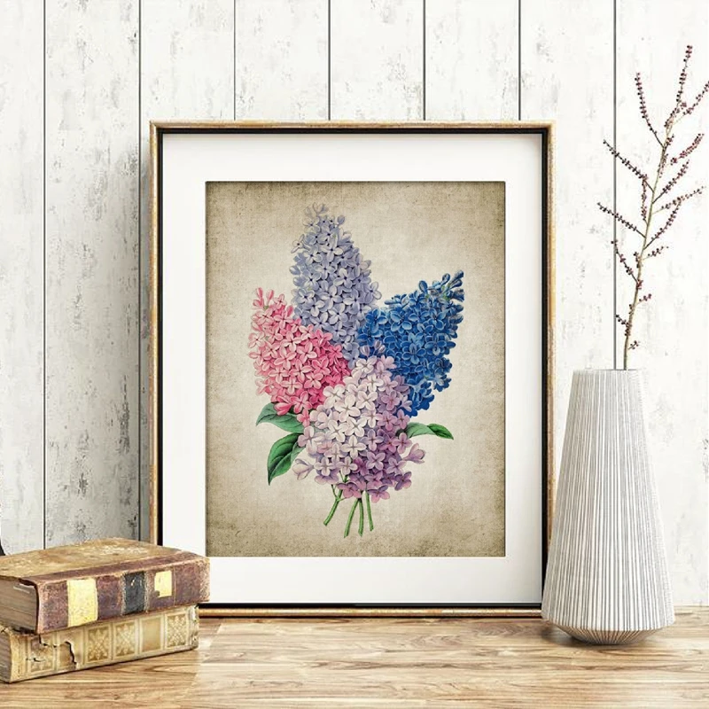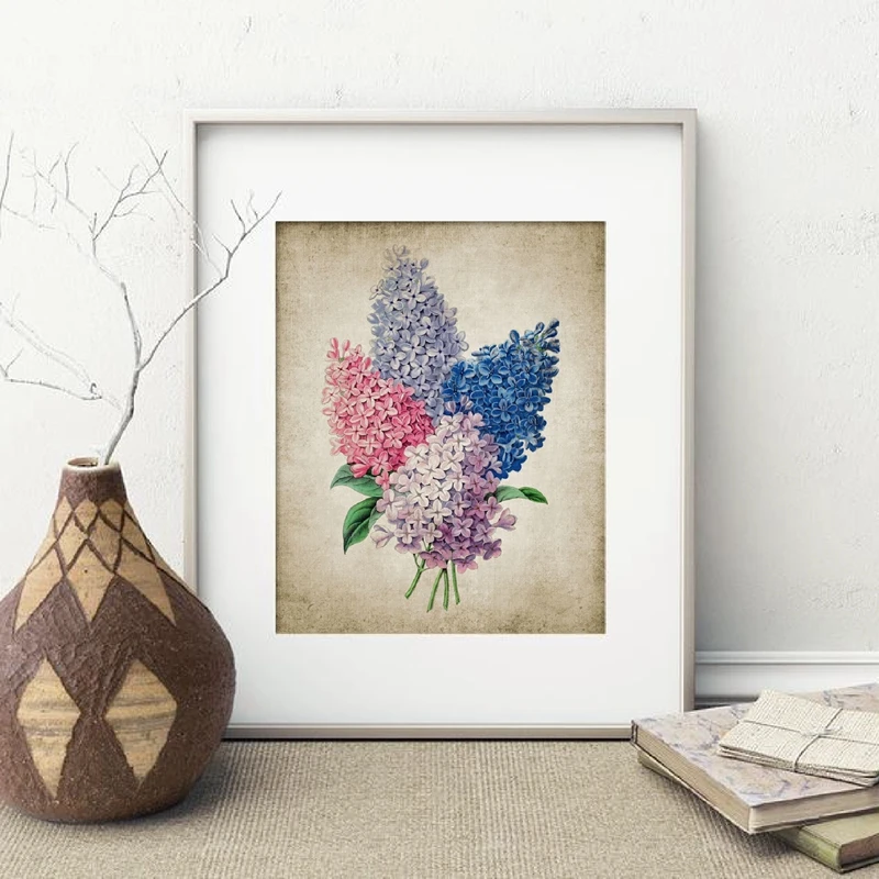 Картина на холсте, с изображением сирени, античный Ботанический рисунок, винтажный настенный плакат