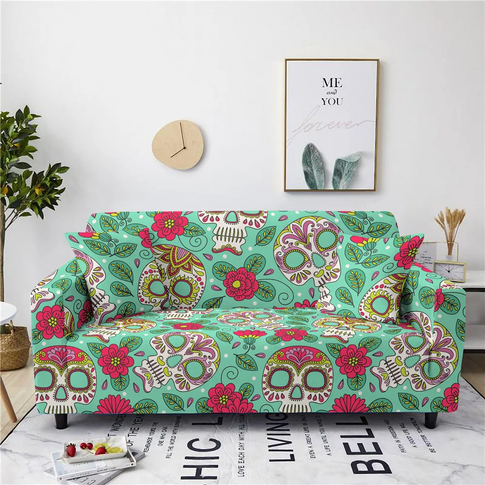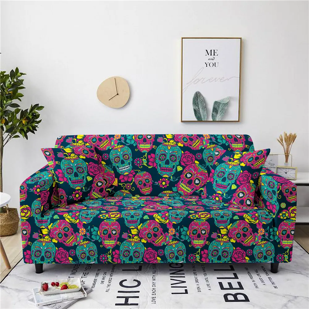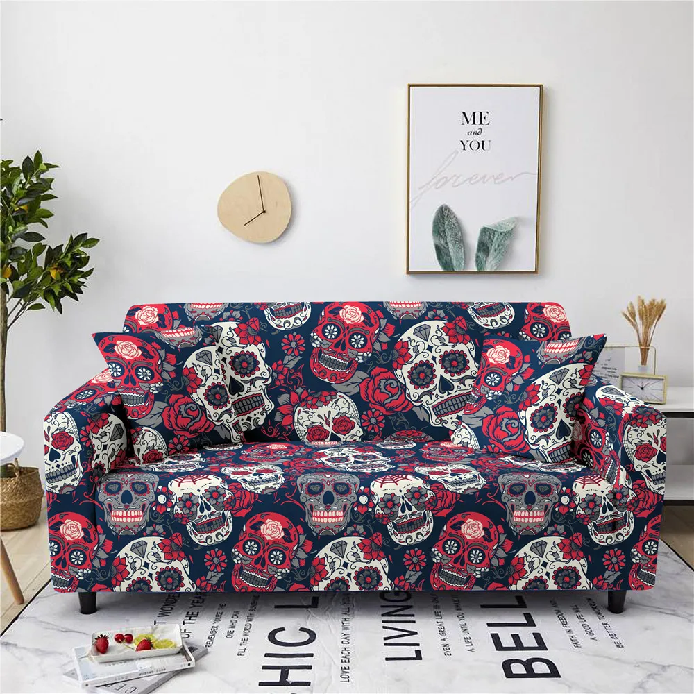 Чехол для дивана эластичный с принтом черепа, защита для мебели