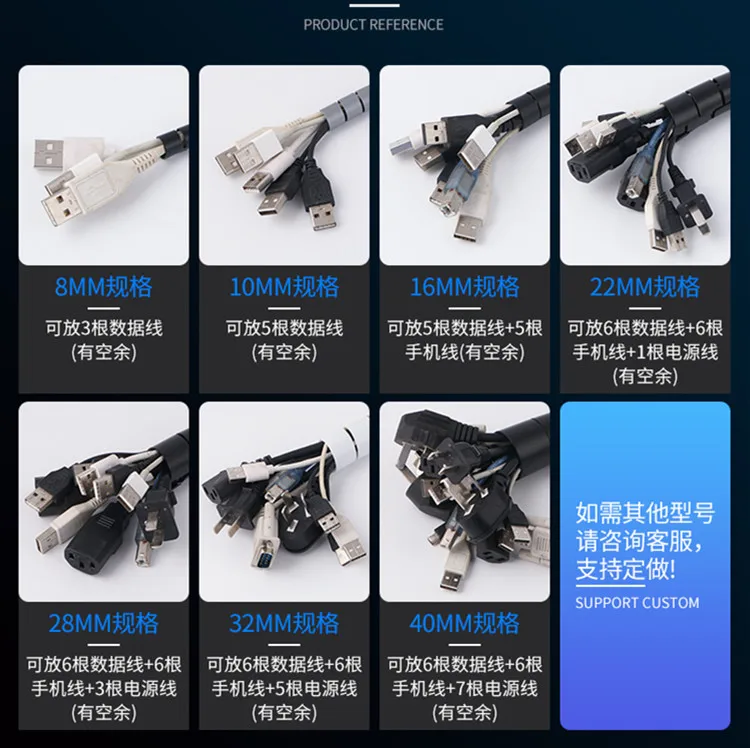Гибкие спиральные трубчатые зажимы, 1 м, 8-42 мм, протектор шнура для офиса, дома, органайзер для хранения проводов
