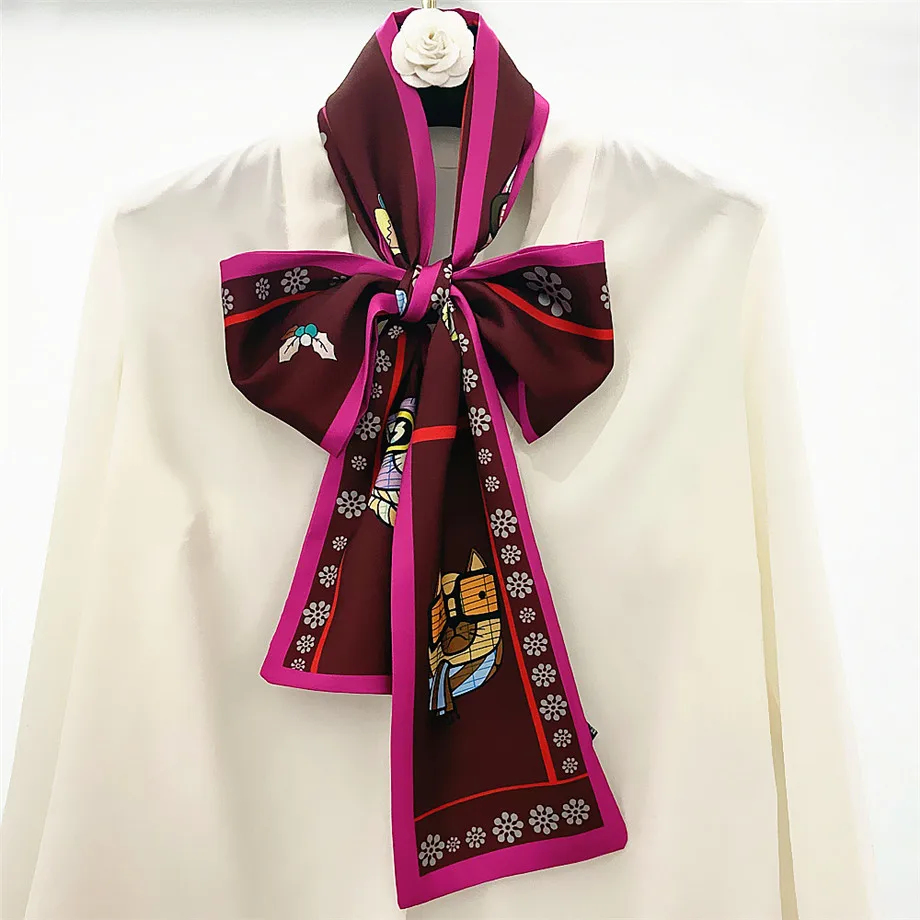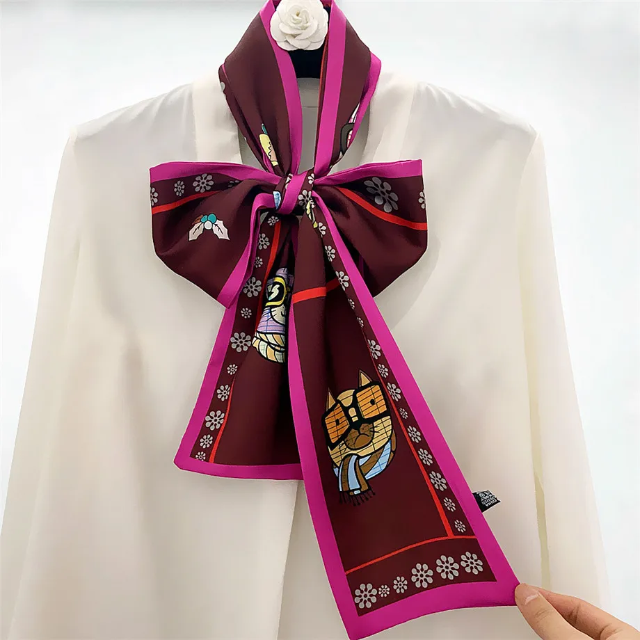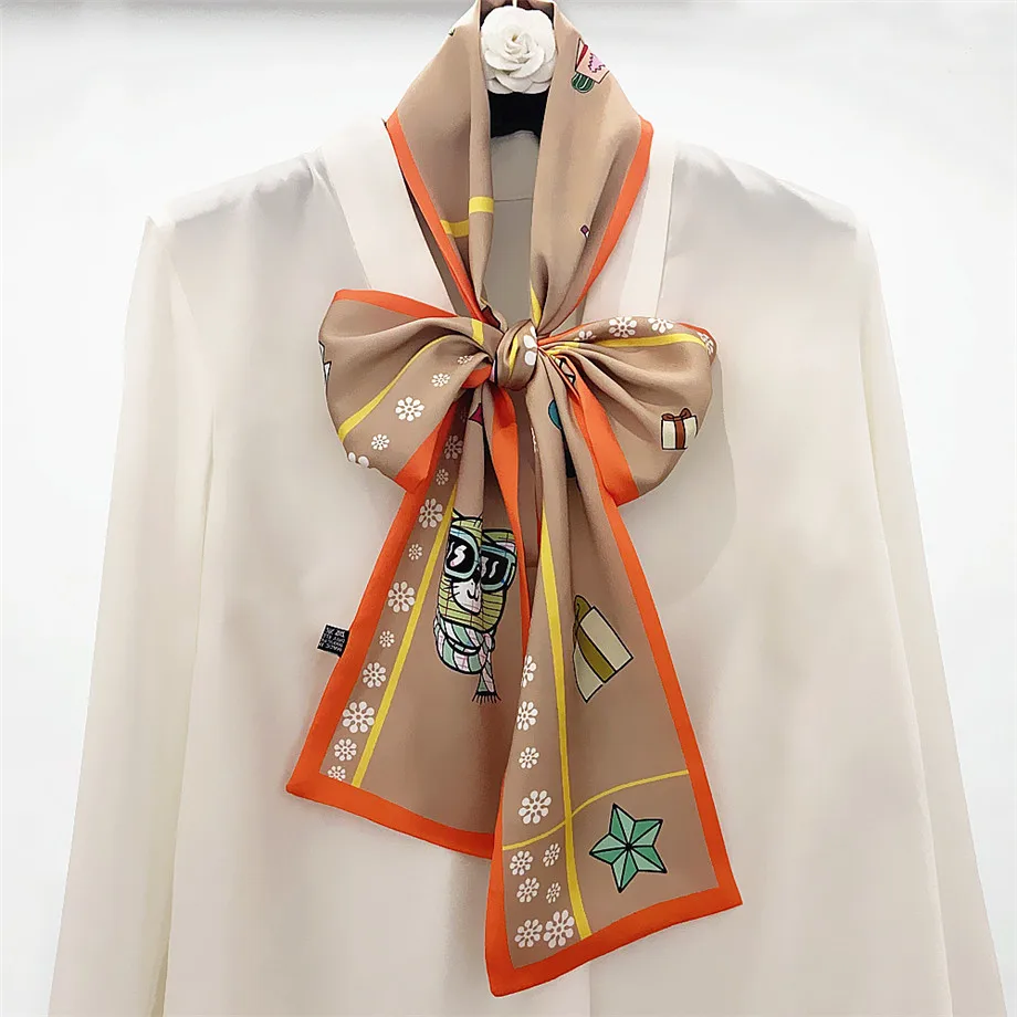 2021 новый весенний шелковый шарф, брендовый двухслойный шарф с рисунком совы, женский модный шейный платок, летние шелковые шарфы для женщин