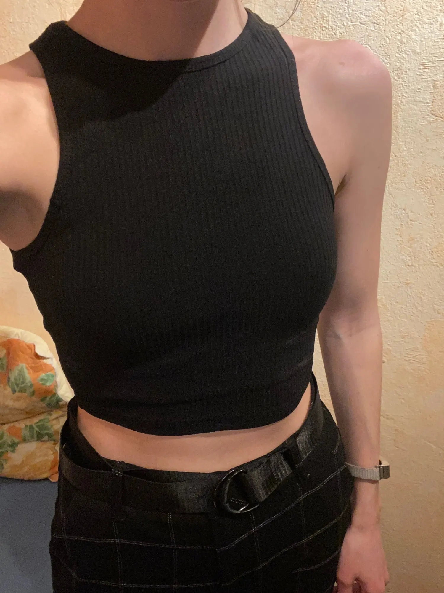 Женские повседневные короткие майки без рукавов, летний женский однотонный жилет с круглым вырезом, модный белый однотонный обтягивающий укороченный топ