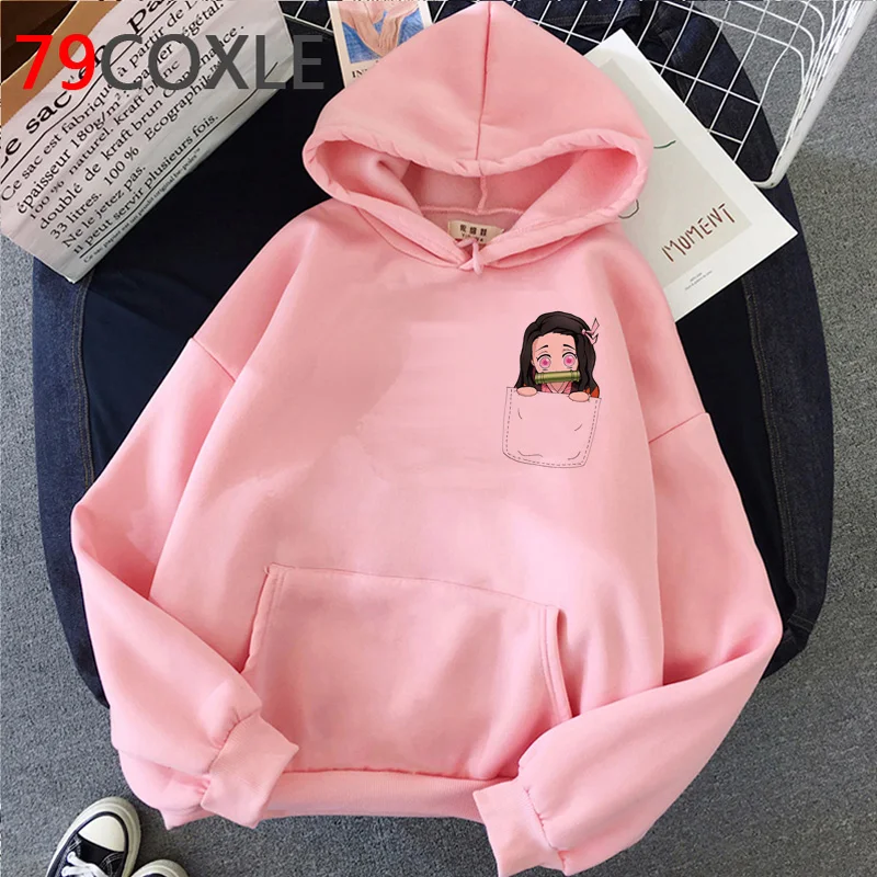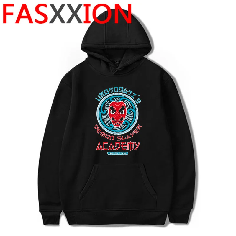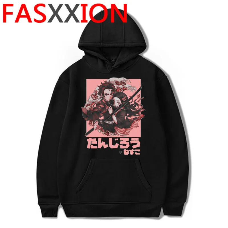 Толстовка мужская в стиле аниме Demon Slayer, худи с милым мультяшным рисунком киметсу но айба, клинок демона, Топ в стиле Харадзюку, черный Свитшот