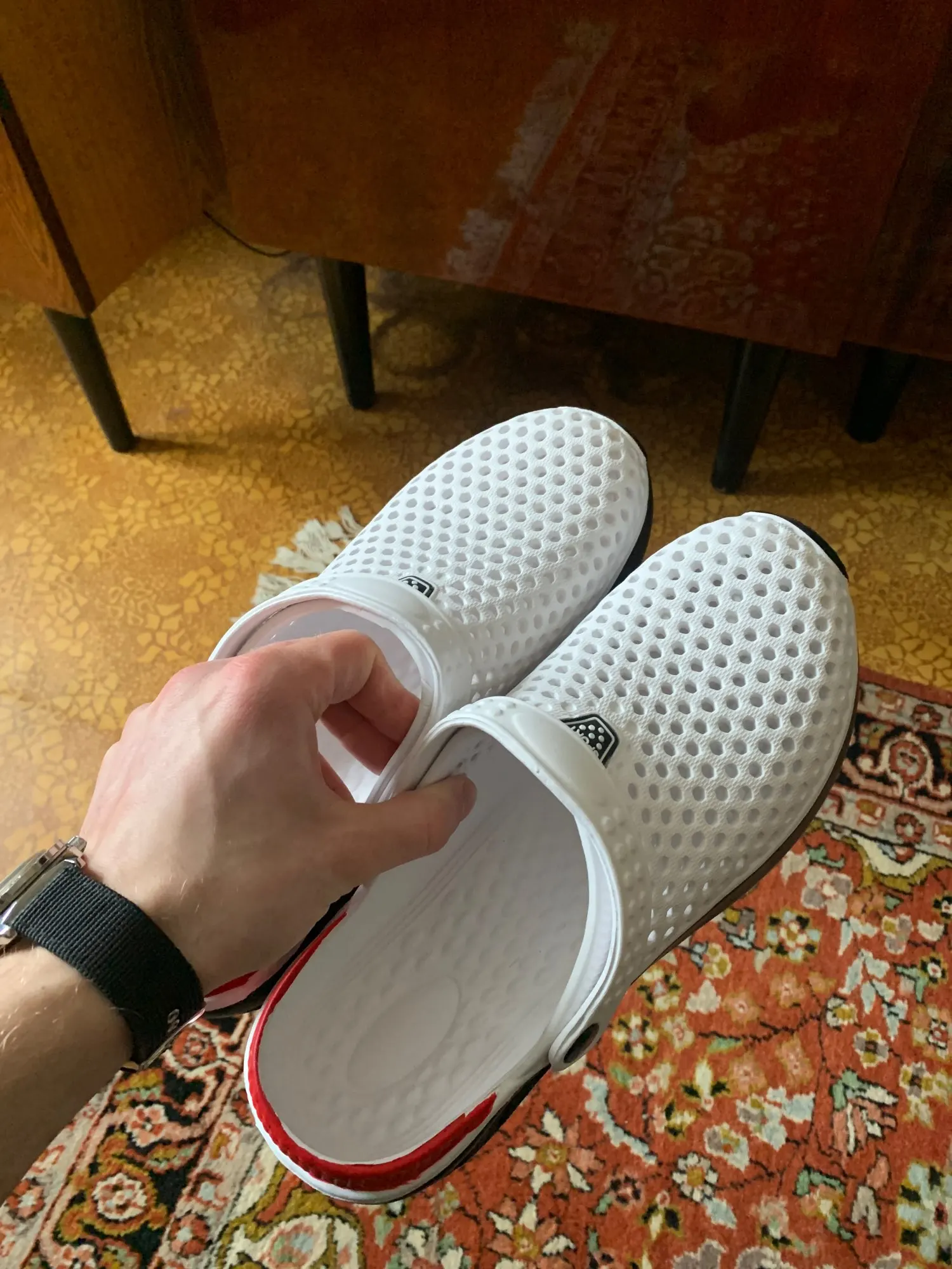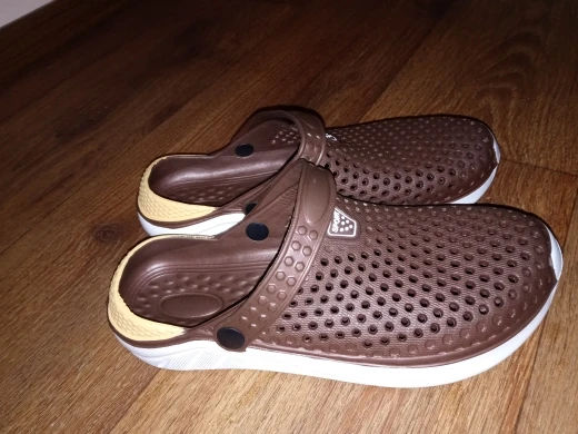 Сегодня получил шлёпки. Думал будут лучше. Резкий химический запах. Пока положил проветриваться на балкон.