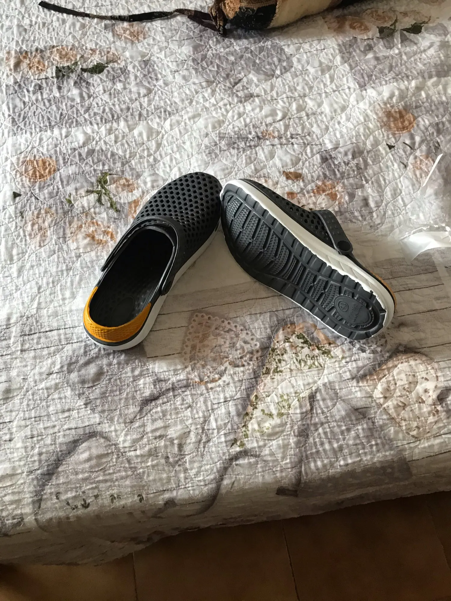Сандальки подошли, на размер российский 42- заказала 44, нога узкая. Присутствует резкий запах, но надеюсь выветрится. Соответствуют фото. Доставка быстрая. Спасибо.