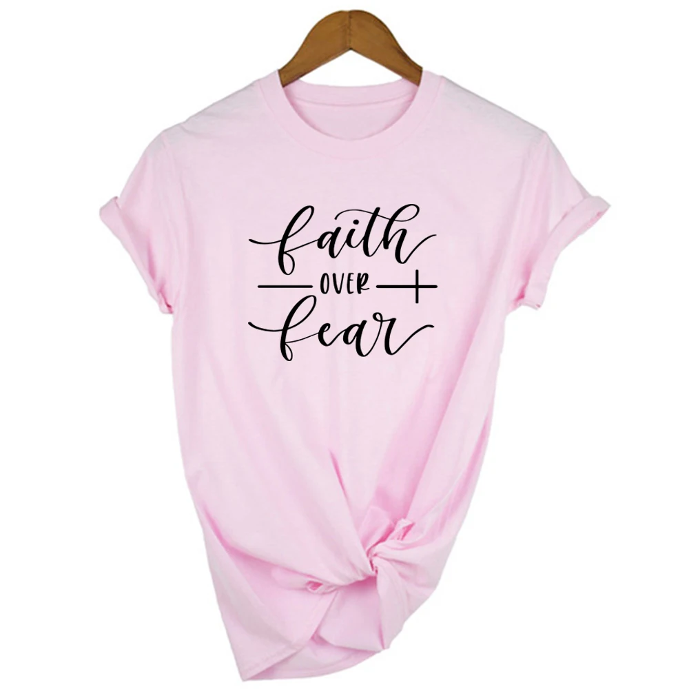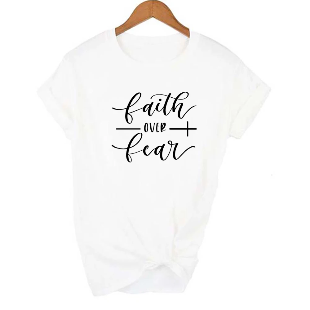 Женская рубашка с вертикальным крестом Faith Over Fear, христианская футболка с надписью Religion Jesus Woman