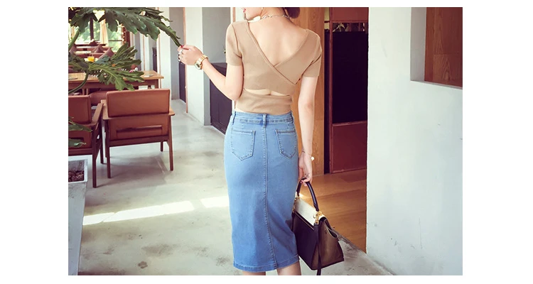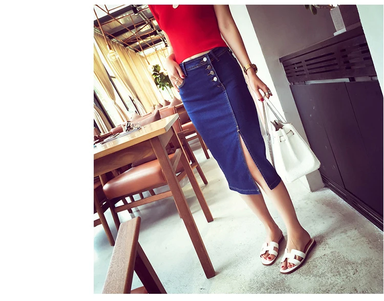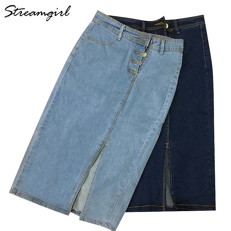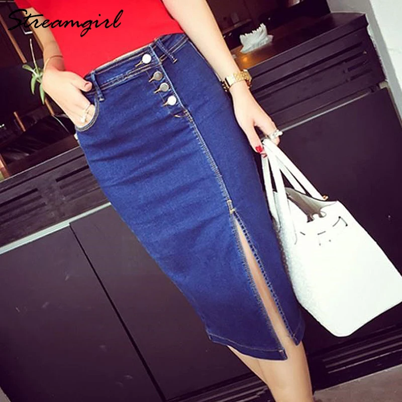 Женская Джинсовая Юбка-миди Streamgirl, облегающая офисная юбка с высокой талией и пуговицами спереди, офисная юбка для женщин, 2020