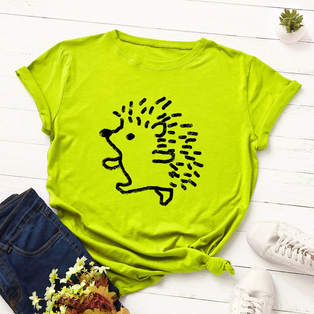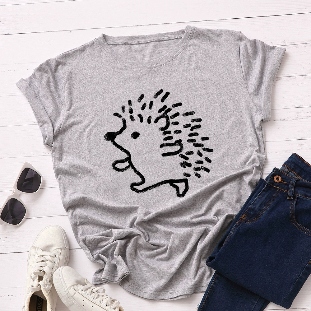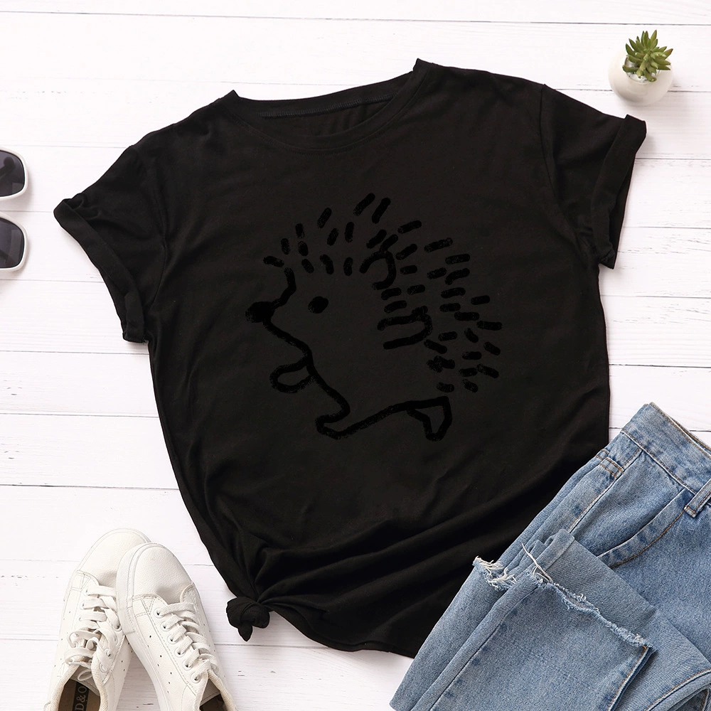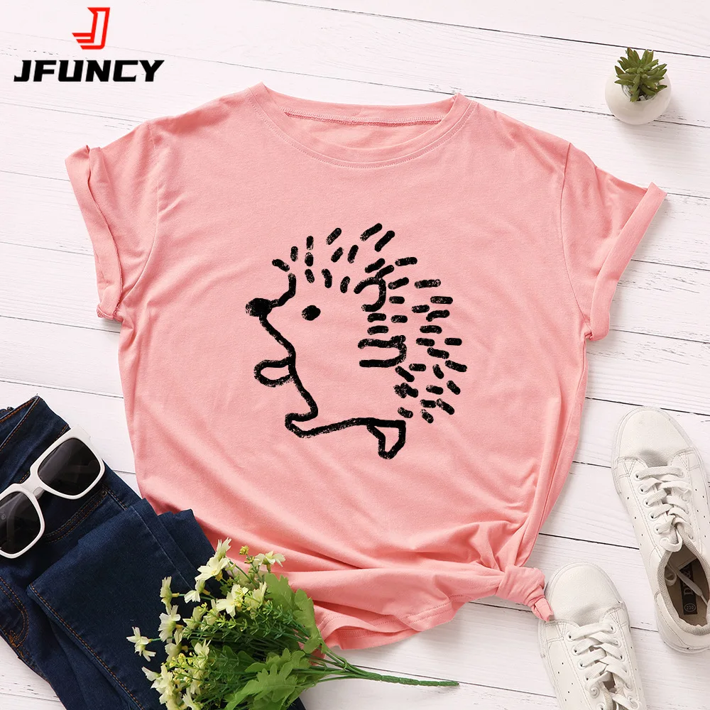 JFUNCY женские хлопковые футболки с милым принтом ежика, графические футболки, женские футболки с коротким рукавом, женская одежда, женская футболка