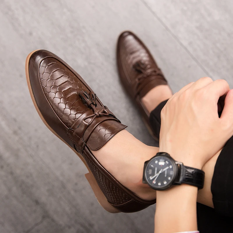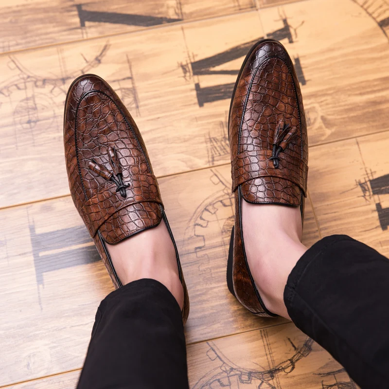 Мокасины мужские из натуральной кожи, уличные модные туфли для вождения, итальянские лоферы с бахромой, без застежки, плоская подошва, лоферы