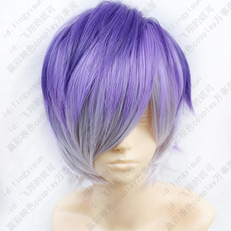 Парик мужской для косплея Сакамаки канато из аниме Любители дьявольского Аниме, термостойкие короткие фиолетовые волосы с эффектом омбре, с шапочкой