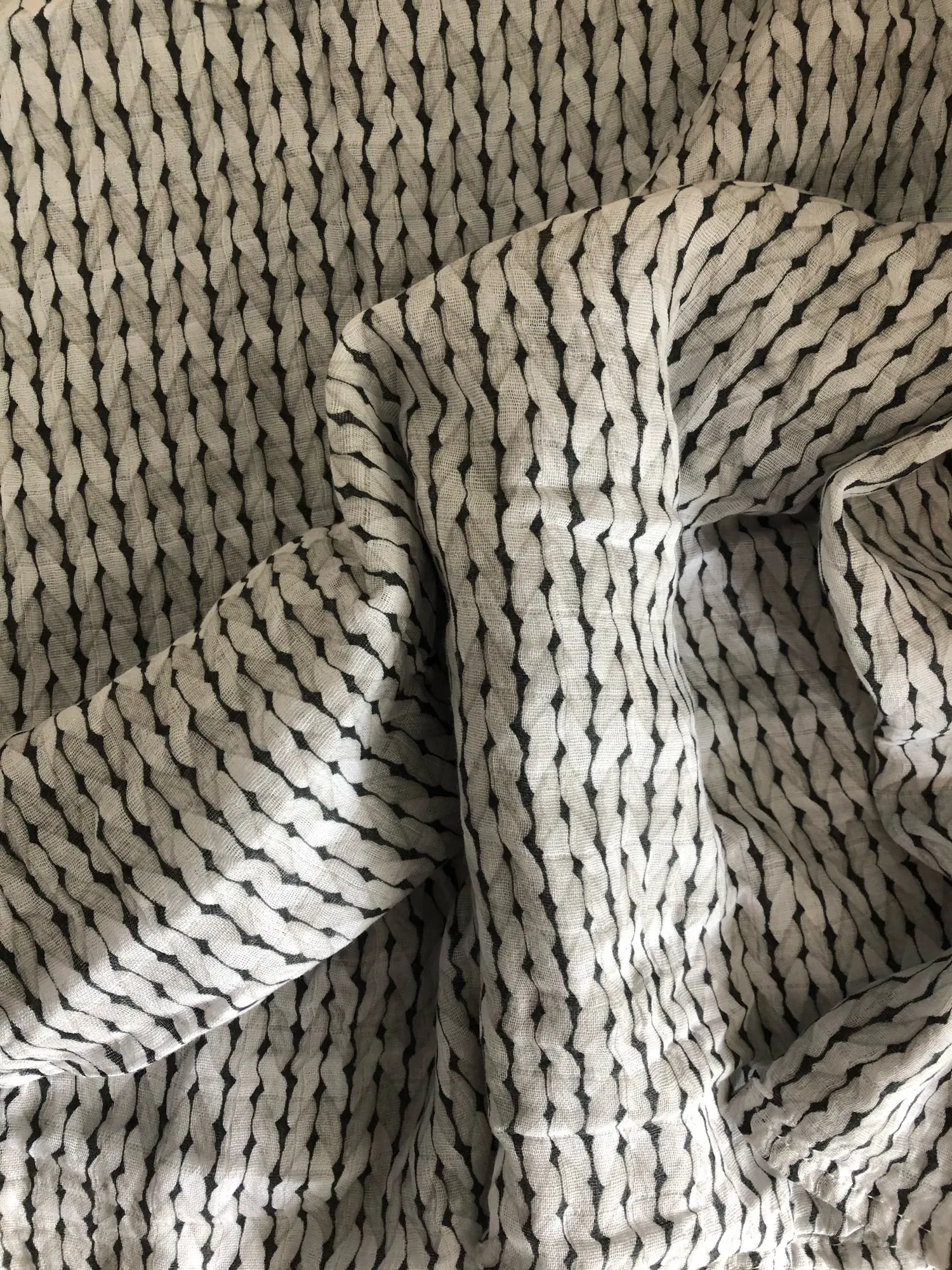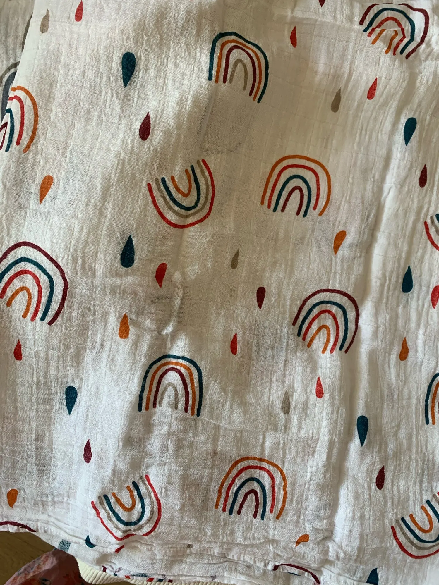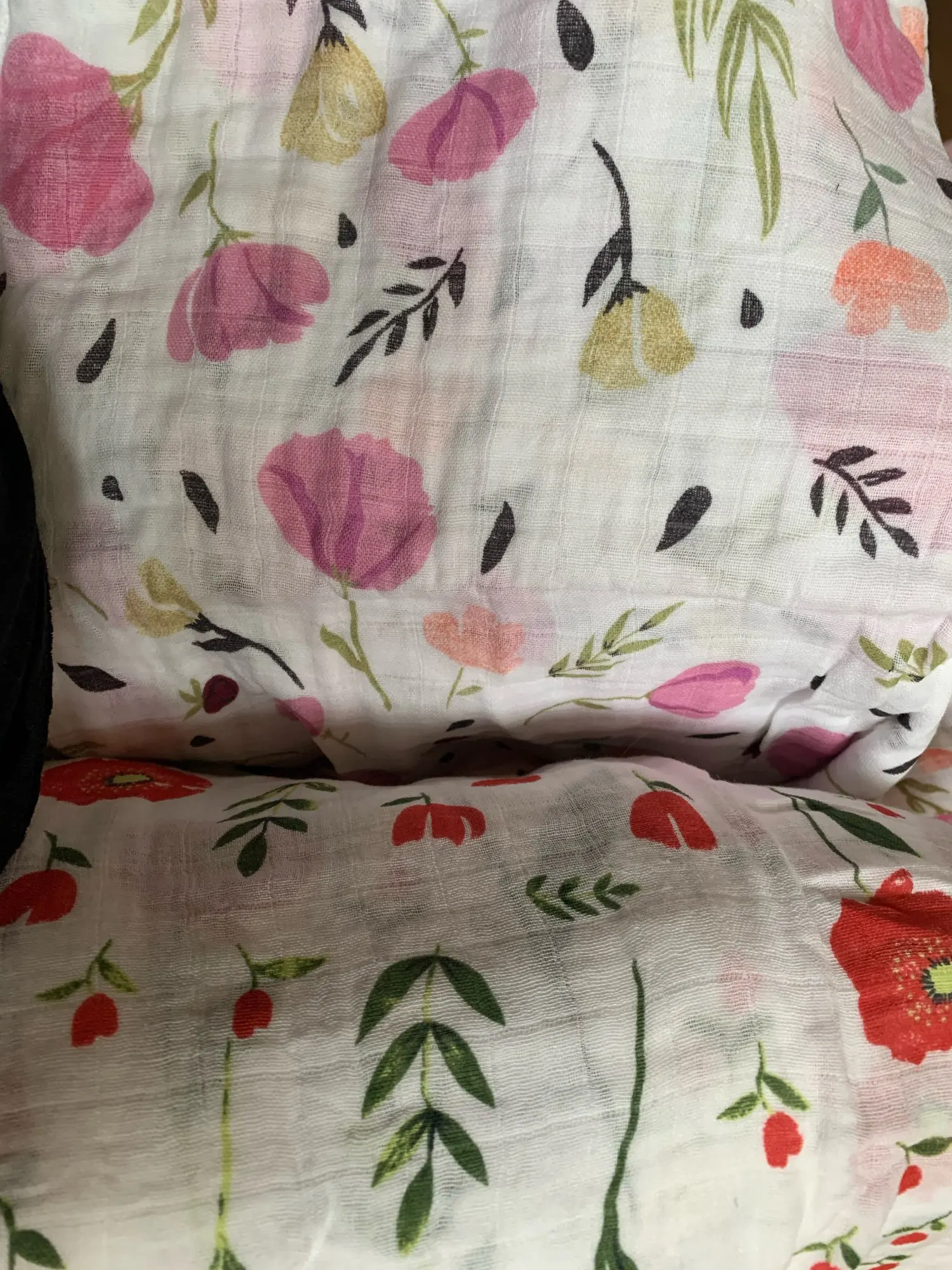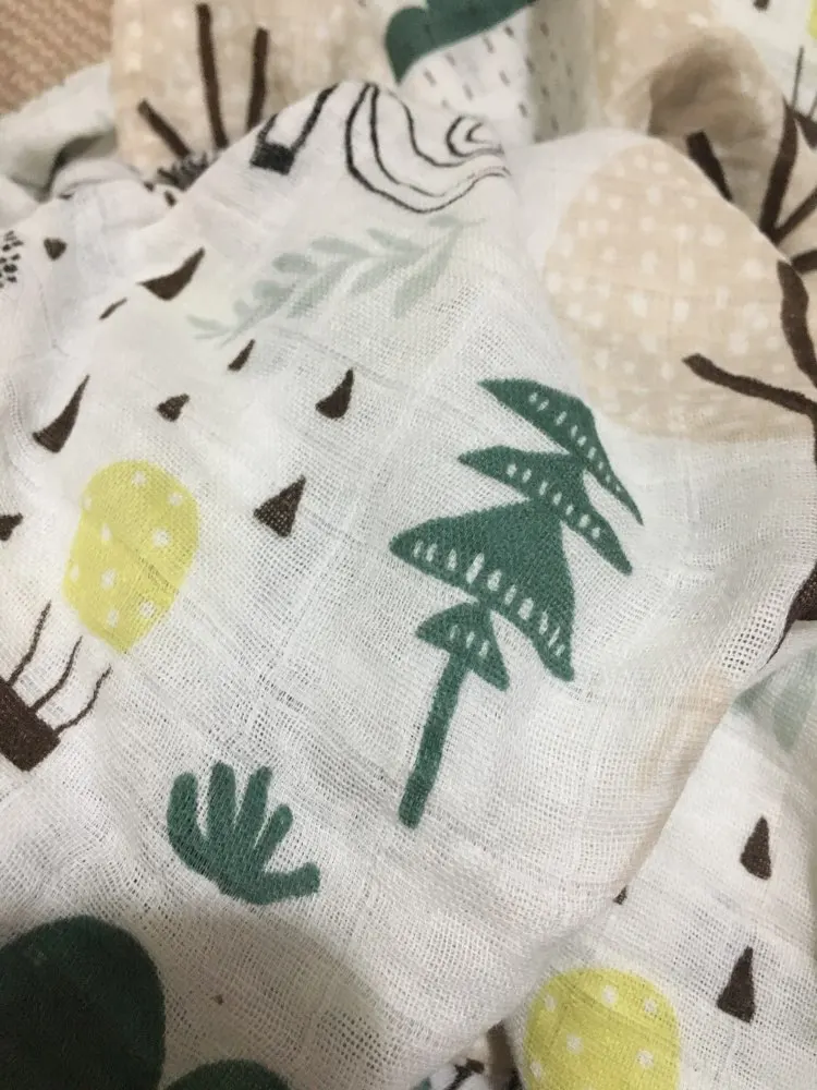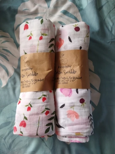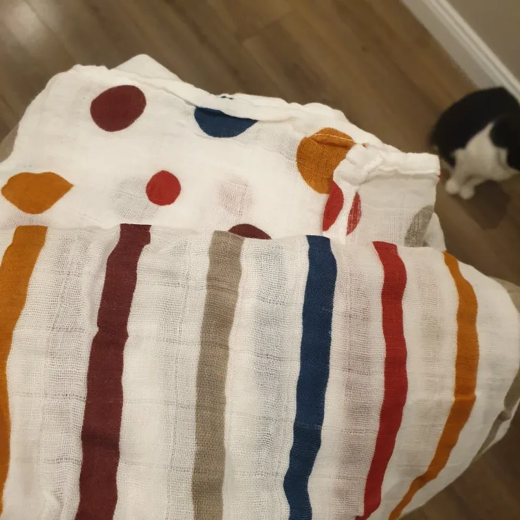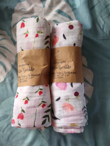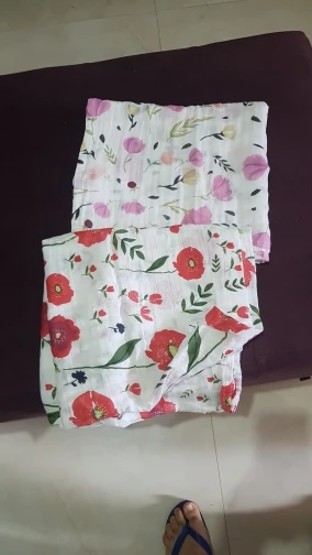 Great product. Material is very soft. The muslings are so big and the pattern and colours are as in pictures. Great to swaddle baby, place above stroller or while breastfeeding. Size is really great.