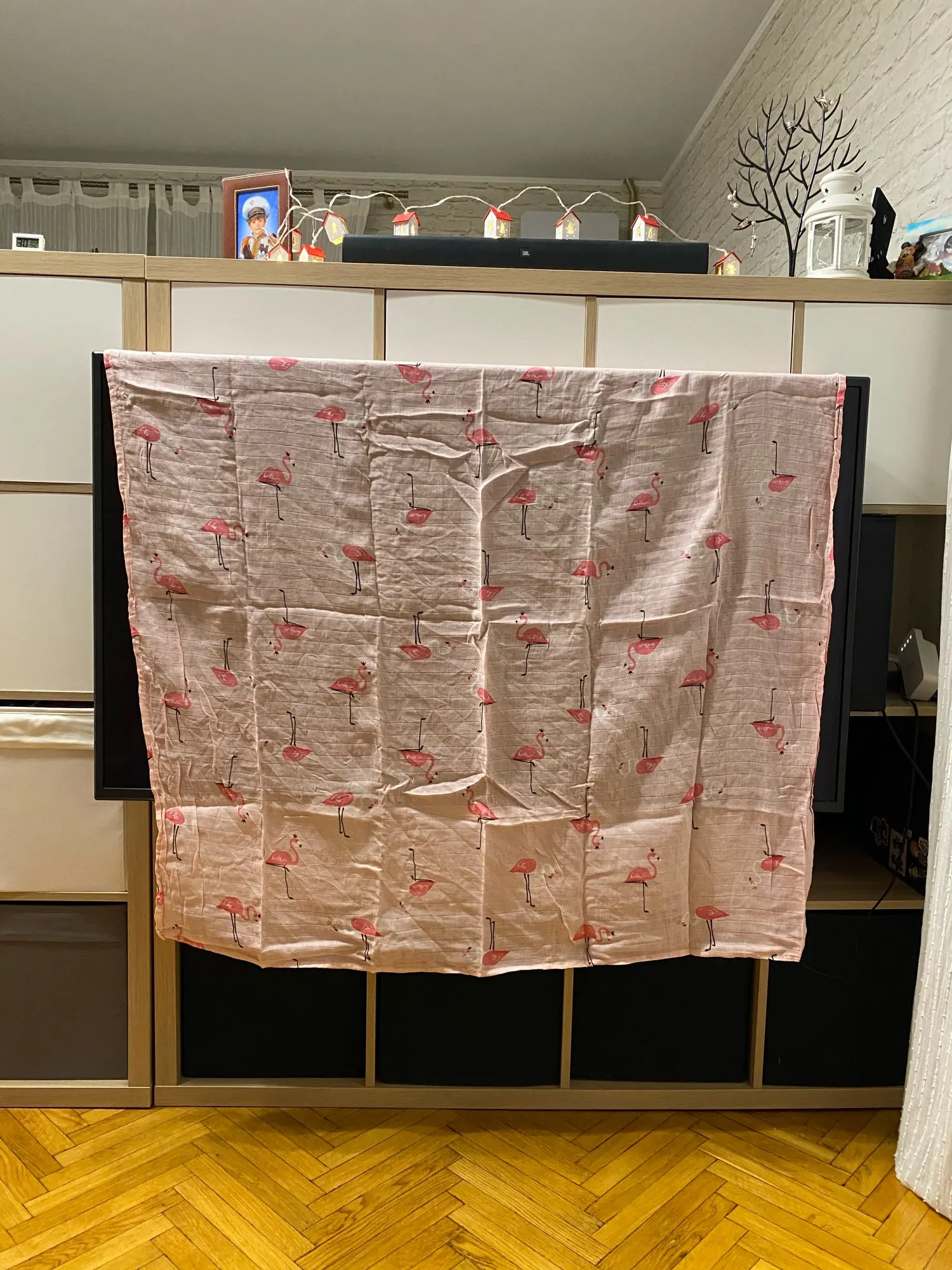 Покупала за 792₽, отправка быстрая 15.11 получила 24.11 на почте (Москва). В свернутом виде были упакованы в пакет. На подарок наверное не пойдёт. Хотя можно в бумагу оберточную или тюлевый мешочек упаковать. Цвет чуть ярче, чем на фото. По размеру скорее всего всё ок. Телевизор с диагональю 55", на нем простыня во всю длину. Запах обычный, не резкий. На упаковке инструкция по применению в картинках;) На ощупь конечно не Aden&Adis. Но возможно после стирки будет мягче. Жду ещё одеяло с такой расцветкой и буду стирать всё вместе. Купила в РД, ибо мне не нравится то, во что там пеленают детей. Особенно совковые одеяла...