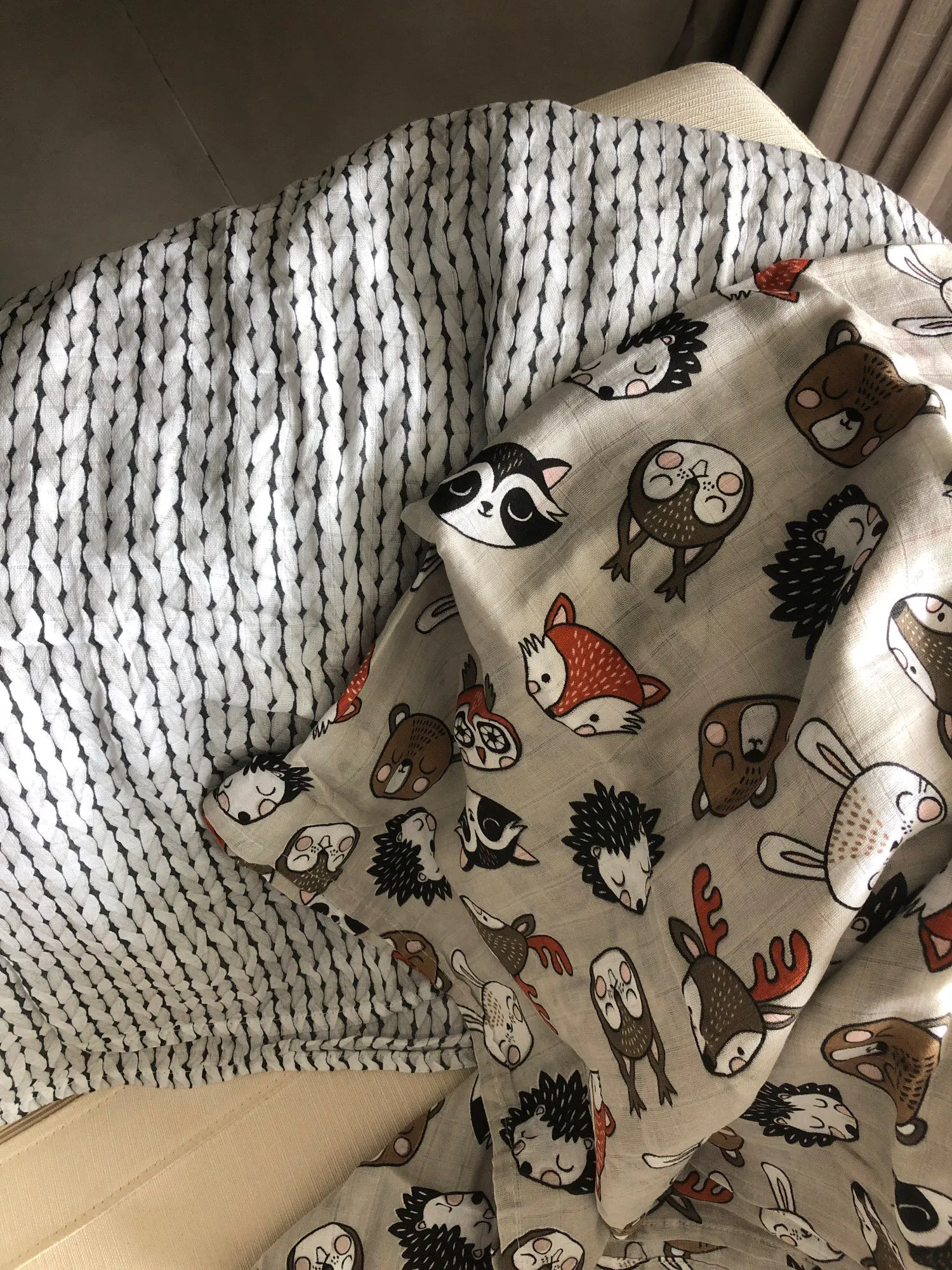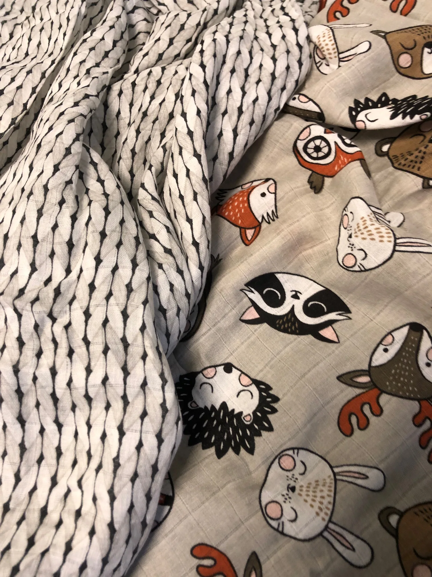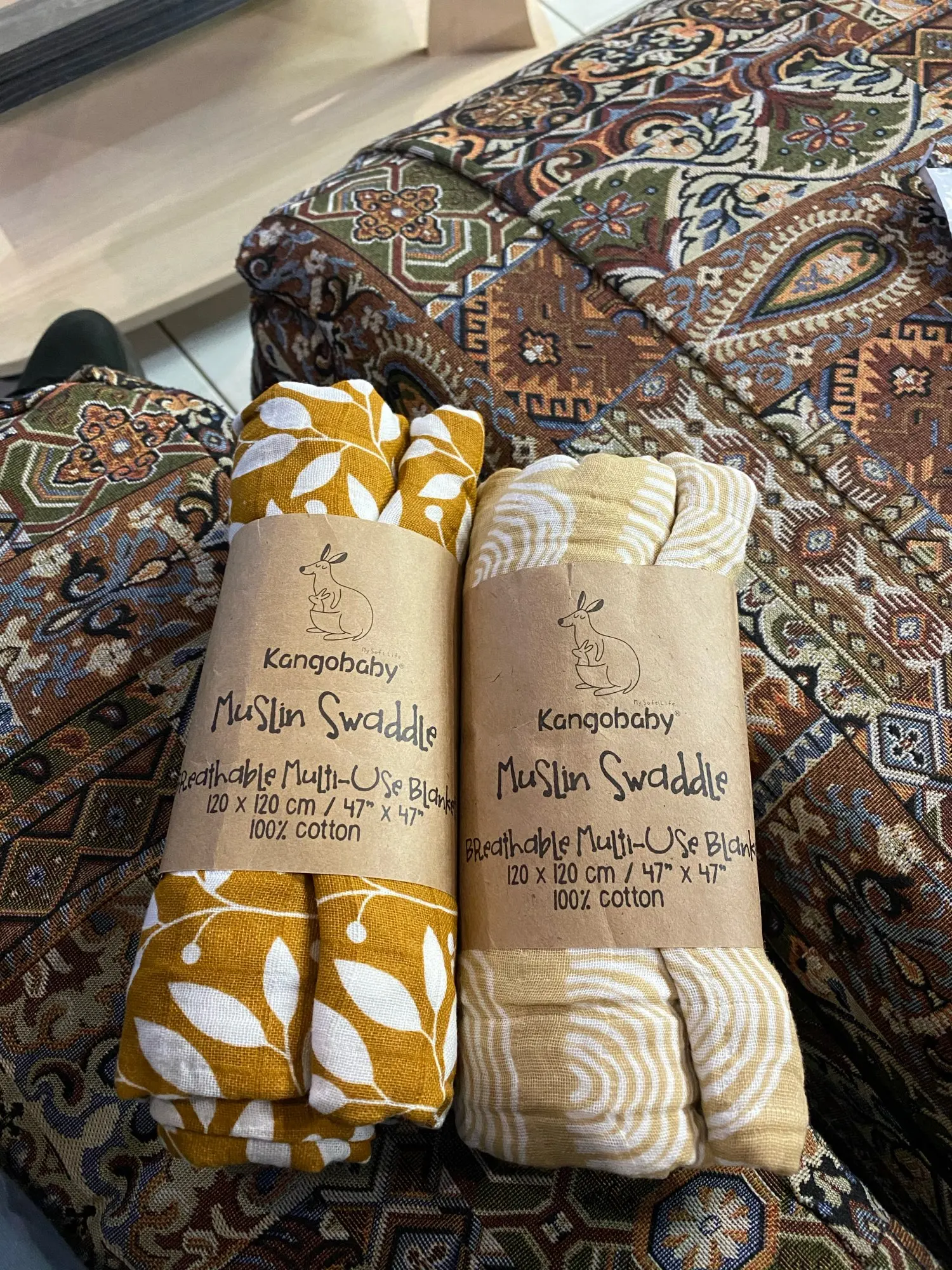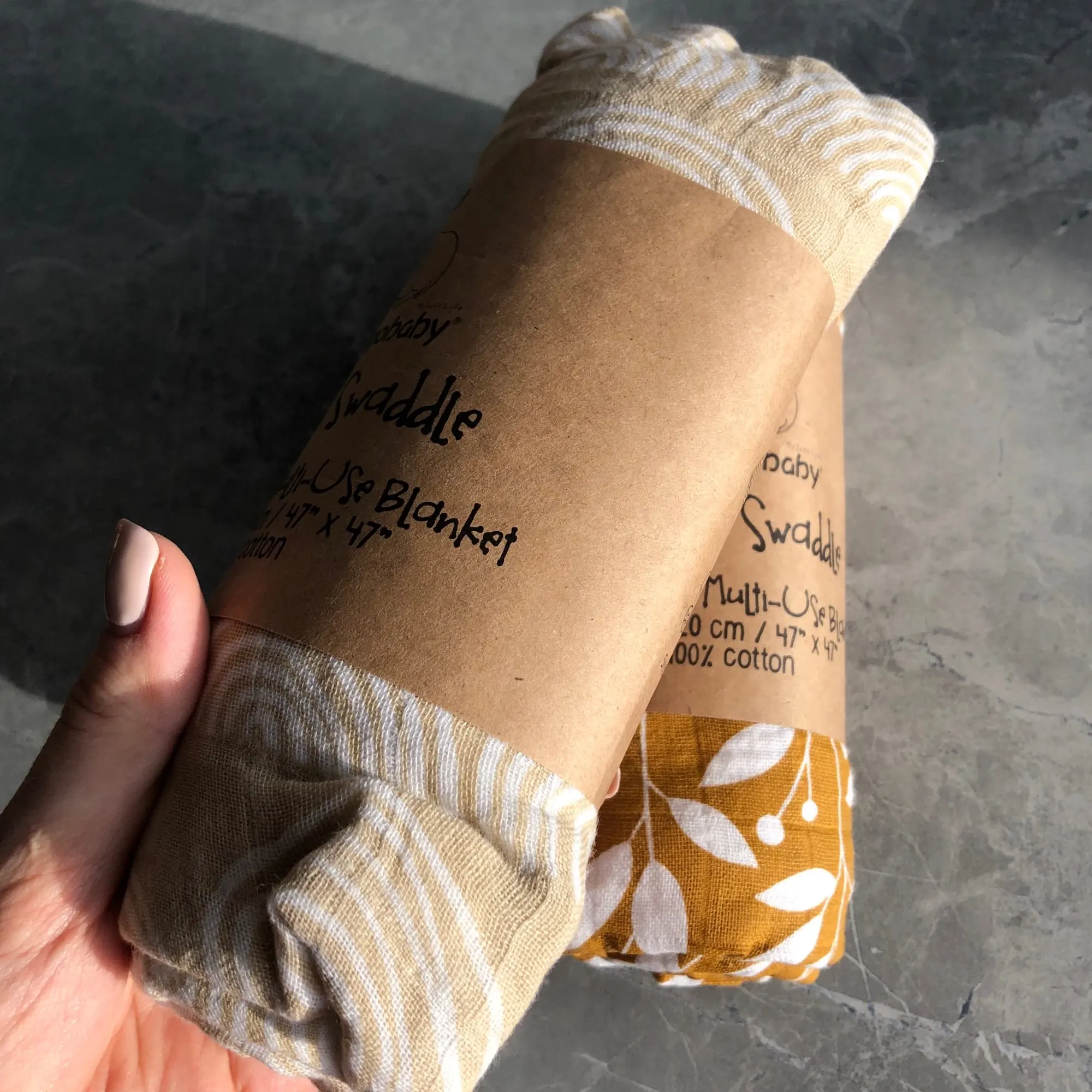 Very cute muslin swaddles, love the patterns and the colours. They are soft and quite large, good size for new born baby or to use as a small blanket, crib cover, seat cover etc. Would recommend, I got mine to keep one and give the other as a gift, they come packages separate so it’s easy to do this. Thanks!