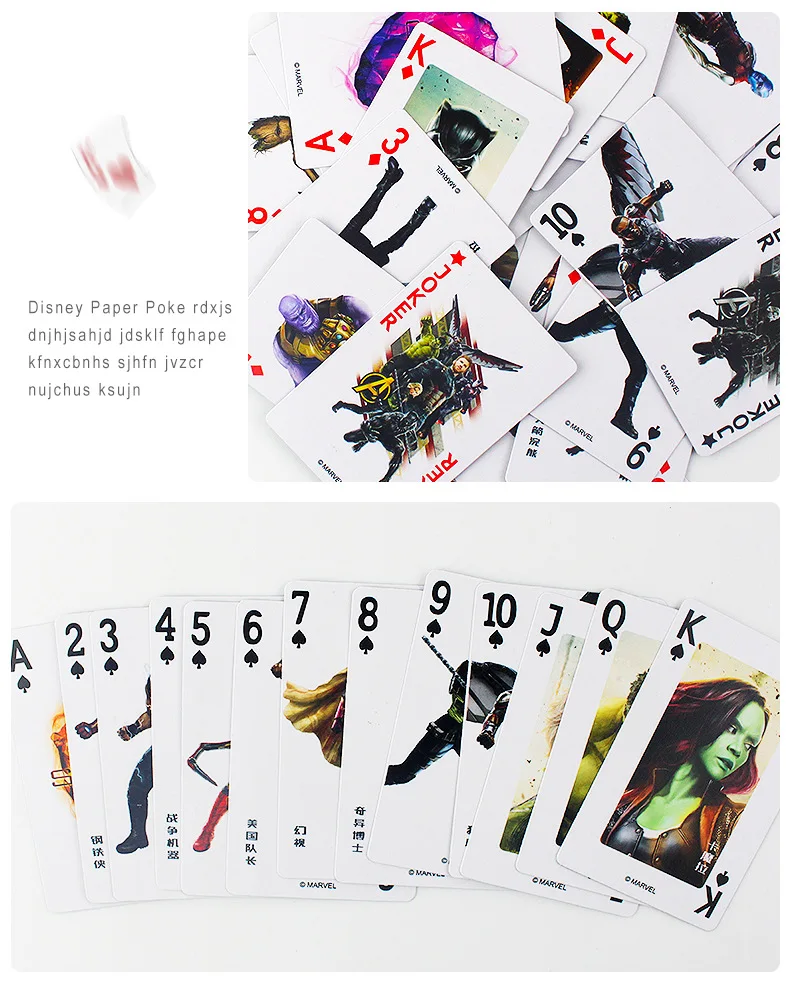 Дисней мультфильм шаблон покер лед Романтика бумажная покерная карта Мстители Бумага покер Повседневная настольная карточная игра