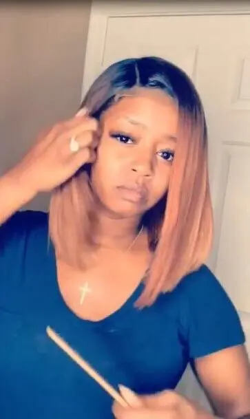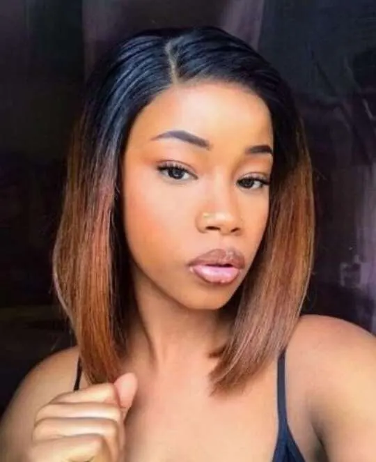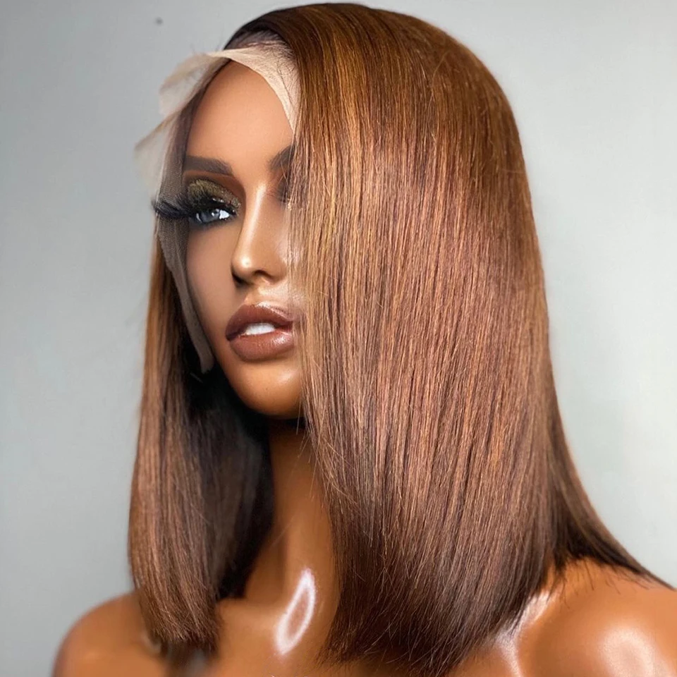 #1b30 медово-коричневый цвет короткий Боб кружевной фронтальный парик Омбре коричневый натуральный черный синтетический шелковистый прямой короткий боб парик Детские волосы