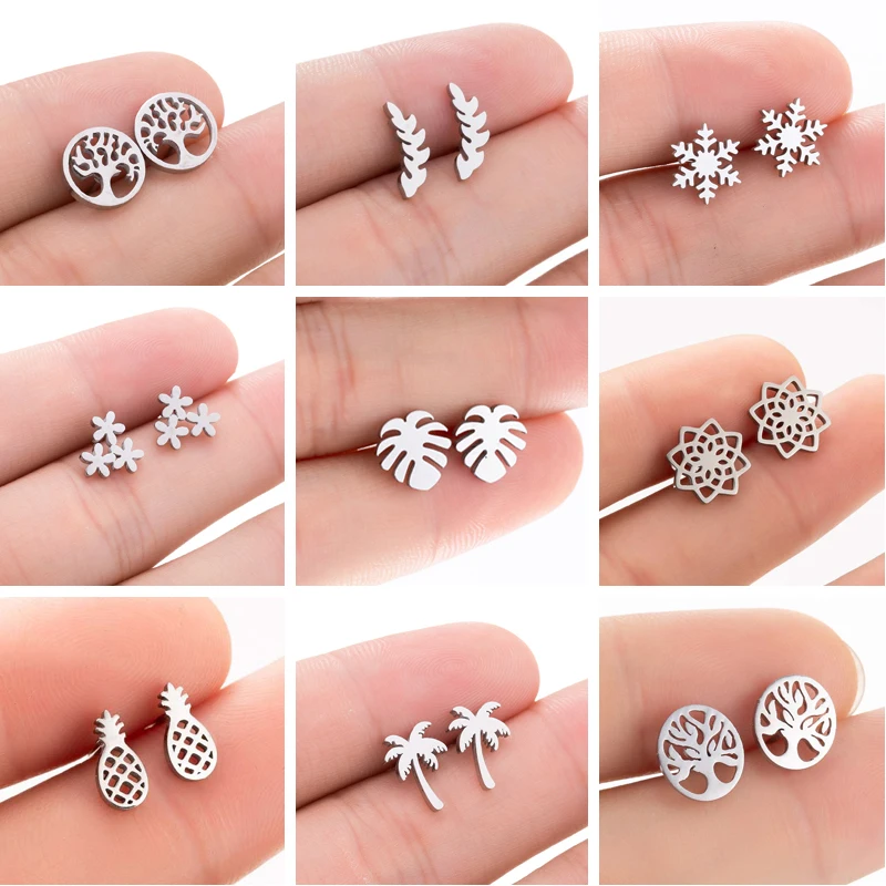 Женские серьги SMJEL в богемном стиле, серьги-гвоздики из нержавеющей стали с кокосом, ананасом, деревом жизни, ювелирные украшения