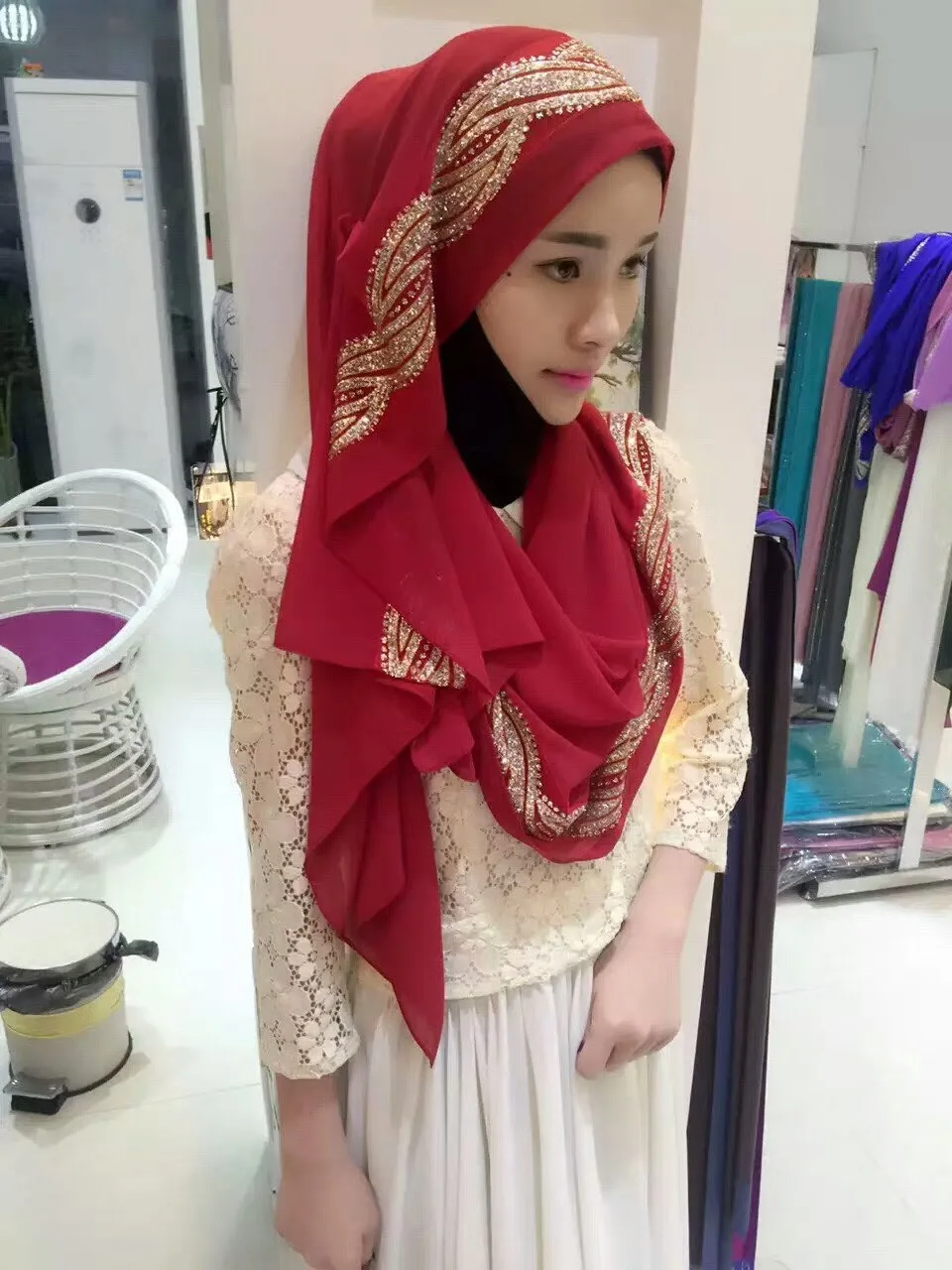 Новый мусульманский шарф, женские блестящие шали с золотой нитью, мягкие шифоновые шарфы, головная оболочка, мусульманский головной платок Hijab глушитель