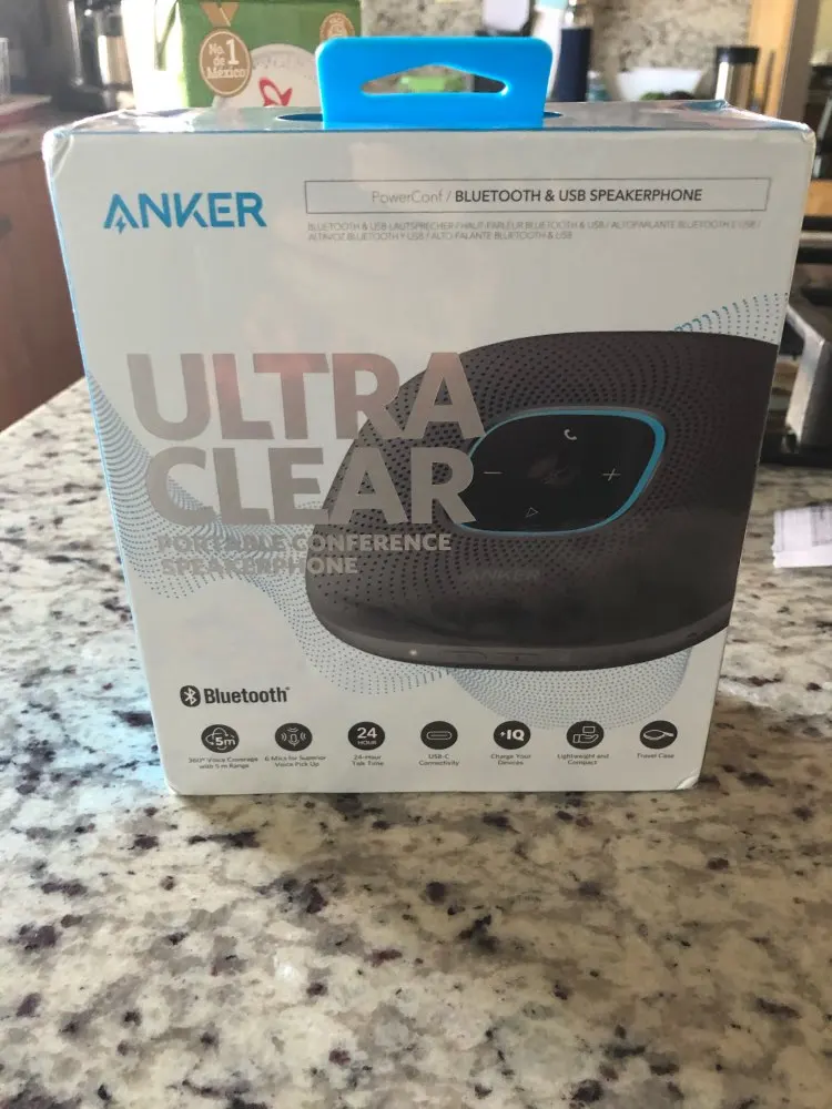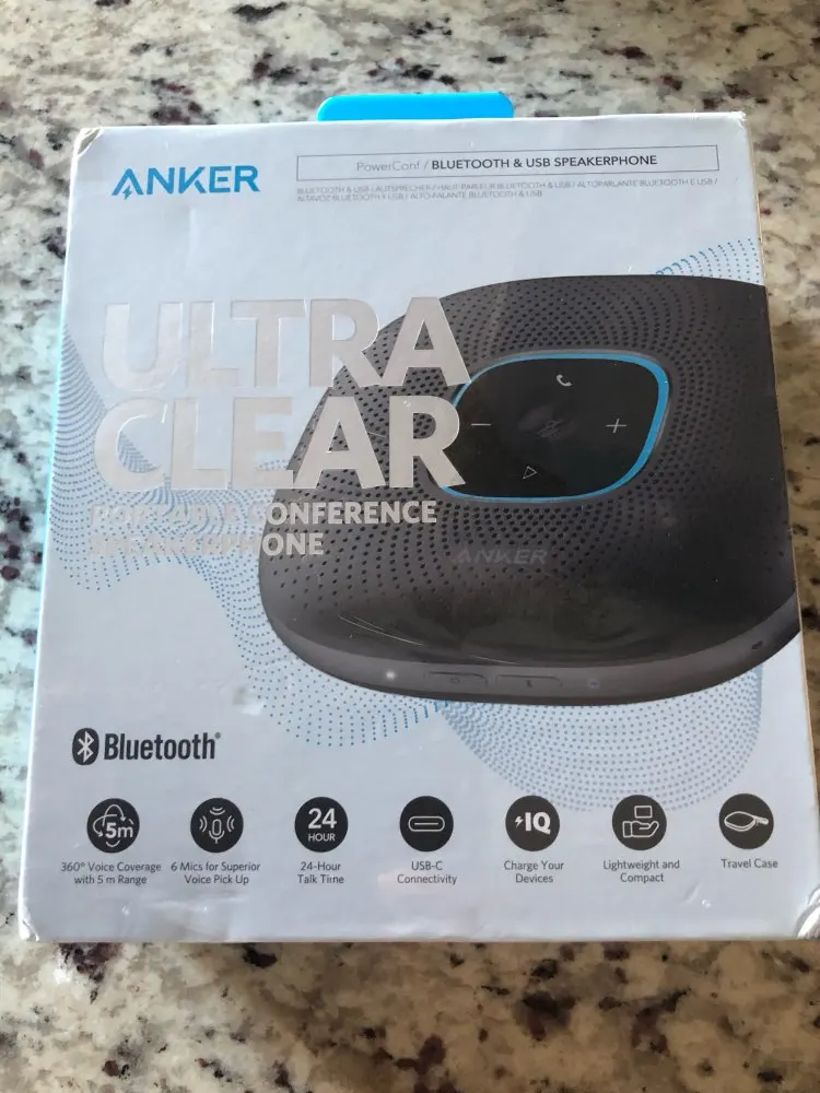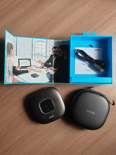 Солидная качественная коробка из твердого картона с ярким принтом снаружи и внутри, открывается книжкой на магнитах. В комплекте помимо спикерфона, кабеля и инструкции, также идет добротный твёрдый чехол. Корпус металлический, гаджет компактный, тонкий, но увесистый. С одной стороны три разъёма: USB, AUX, Type-C для зарядки, с другой кнопка блютуз и включения. Отмечу чистый звук, без эхо, без каких либо помех. Подключается быстро, связь не прерывается. Девайсом полностью доволен. Анкер как всегда не подвели.