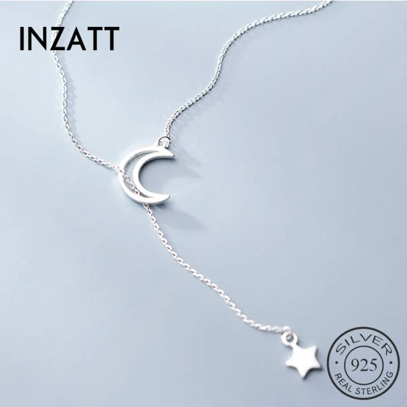 Женский кулон со звездой и Луной INZATT, кулон из настоящего серебра 925 пробы, вечерние ювелирные изделия, подарочные аксессуары