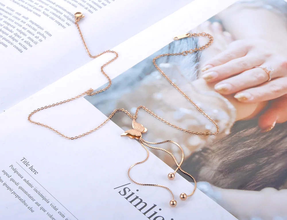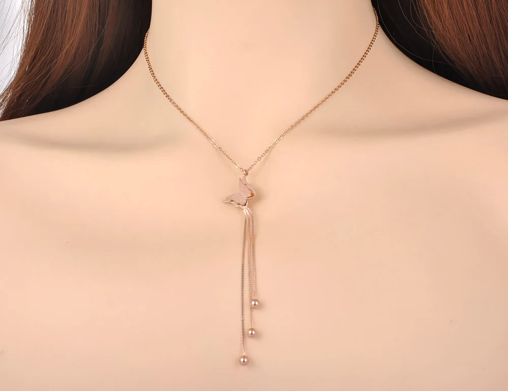 Женский чокер с бабочкой Lokaer, ожерелье из нержавеющей стали цвета розового золота с подвеской-бабочкой, N20019