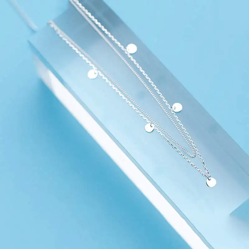 Цепочка женская из серебра 925 пробы, двухслойная, с блестками