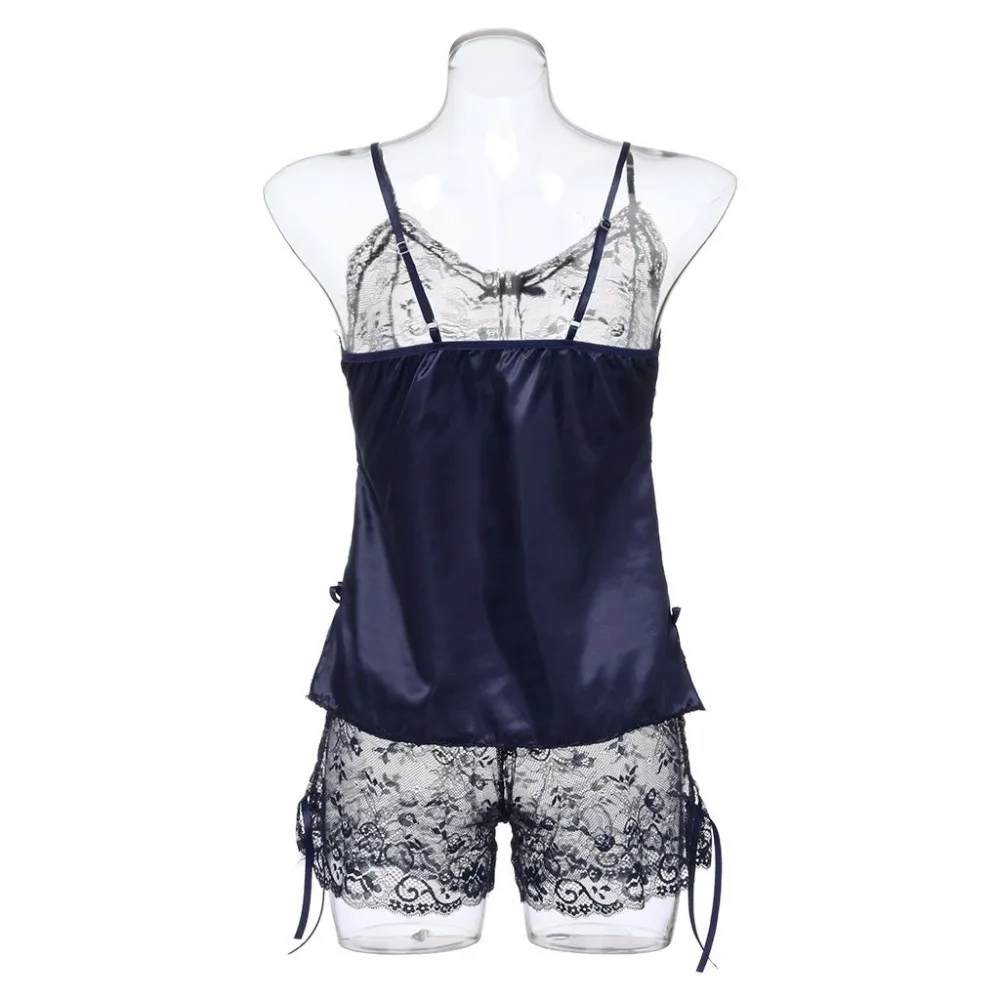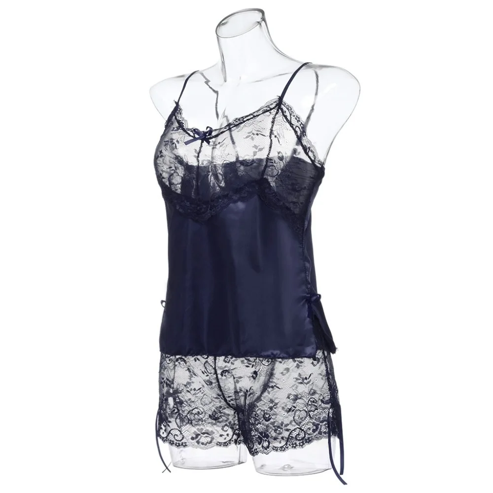 Неотразимый комплект сексуального нижнего белья из гладкого сатина с цветочным кружевом.