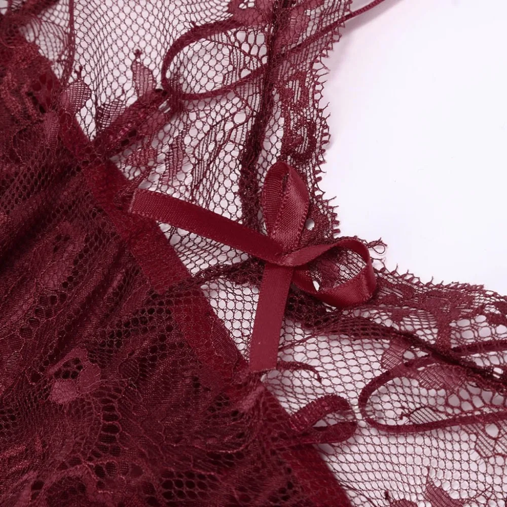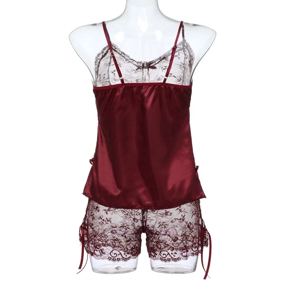 Кружевной пижамный комплект с эластичной резинкой на талии ^ удобная и пикантная кружевная ластовица, Сетчатое покрытие.