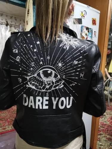 куртка суппер! по размеру подошла отлично. заказала размер М на рост 160см и вес 50кг. S былбы маленький. качество классное, запаха неприятного нет, роспись не смазаная. быстро дошла посылка. я довольна !
