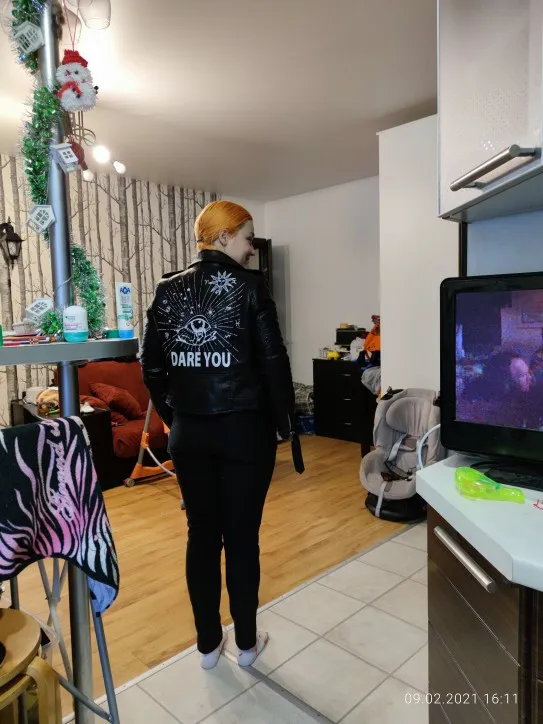 Курточка очень классная, полностью соответствует описанию, в точности как на фото продавца. Маломерит на размер, ношу S, благодаря отзывам заказала M и не прогадала, села отлично)) Так что берите на размер больше. Заказ отправили и доставили быстро) спасибо продавцу за хороший, качественный товар по приятной цене))