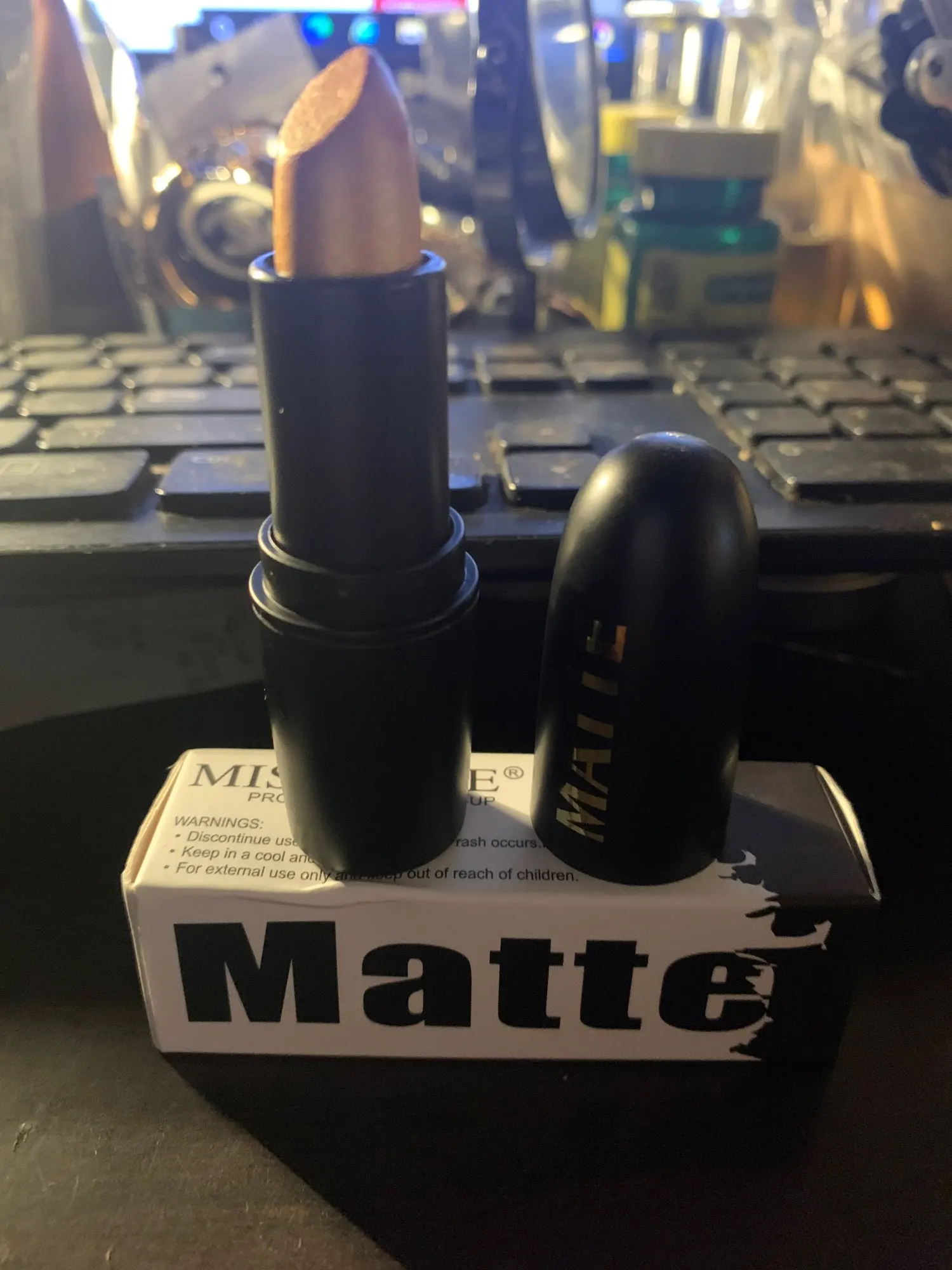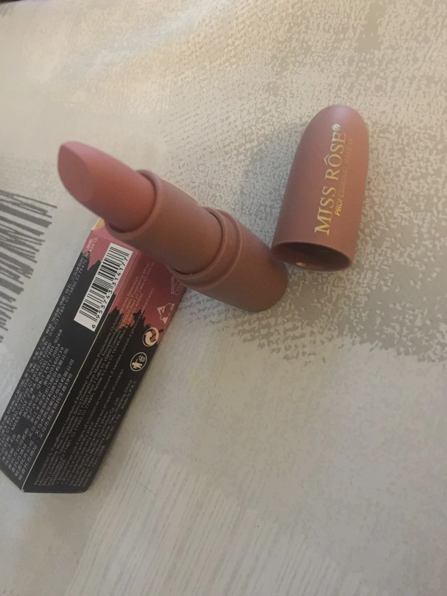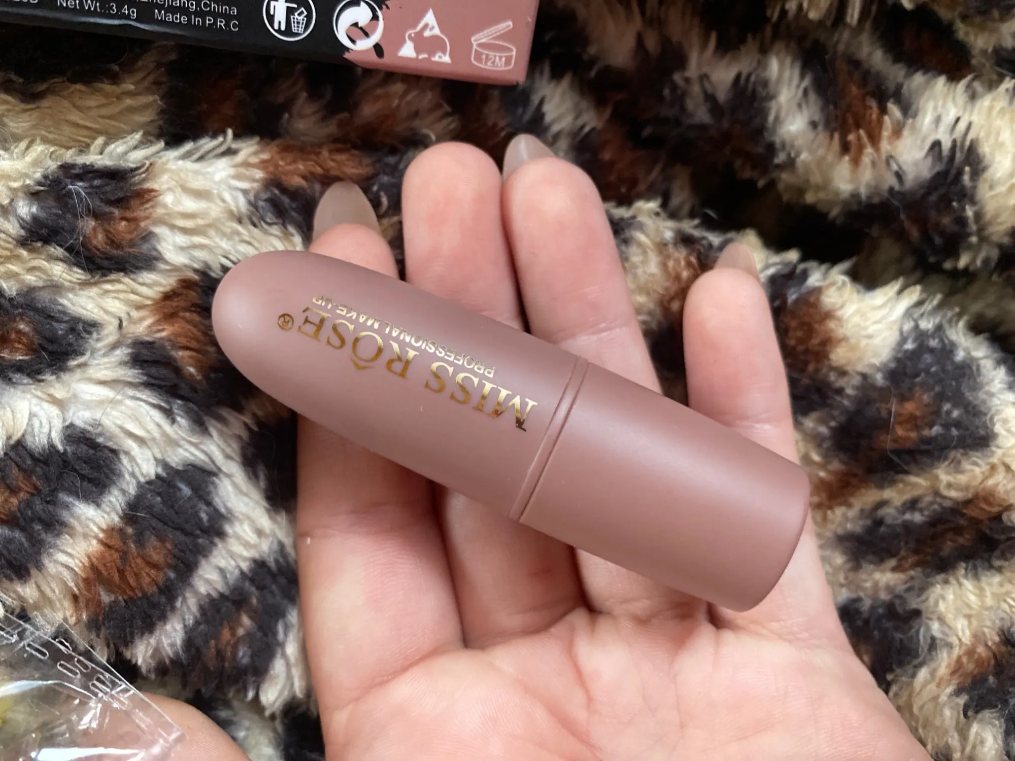 товар приехал такой же как в описании. правда текстура помады легкая не плотная, в связи с чем цвет не насыщенный