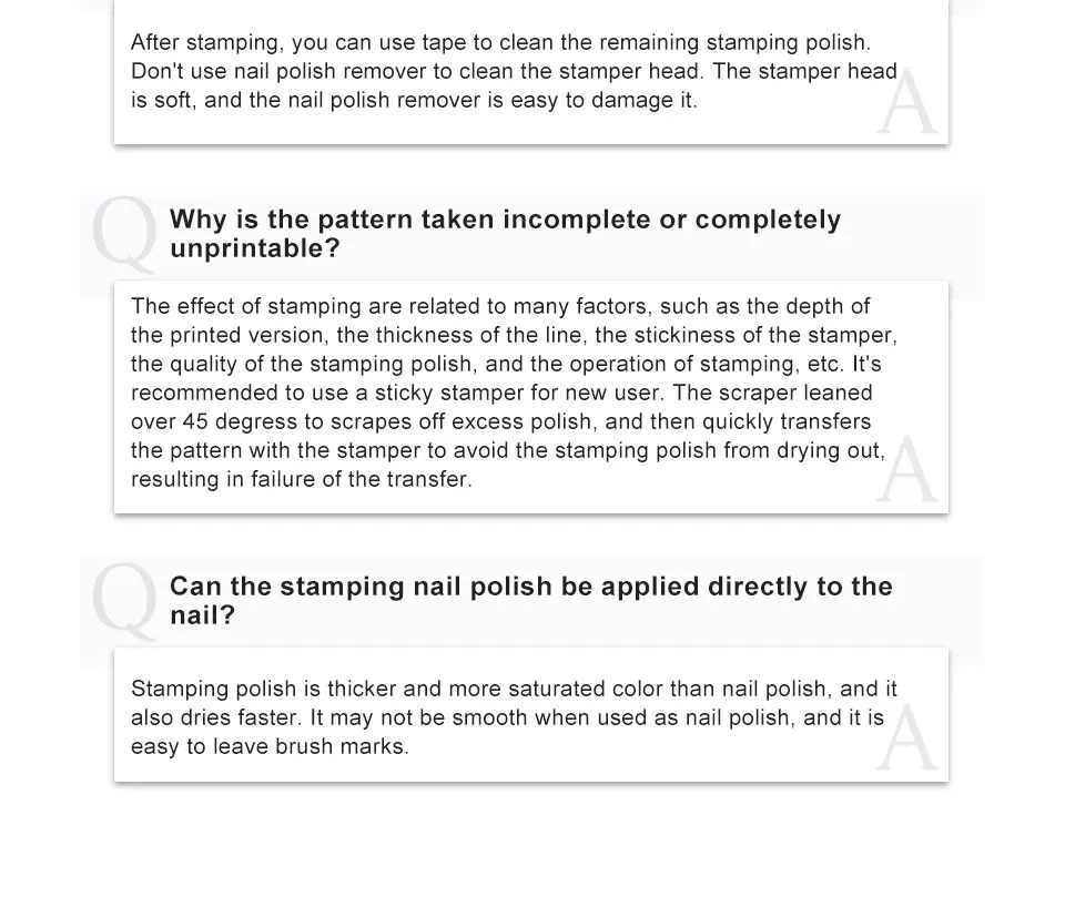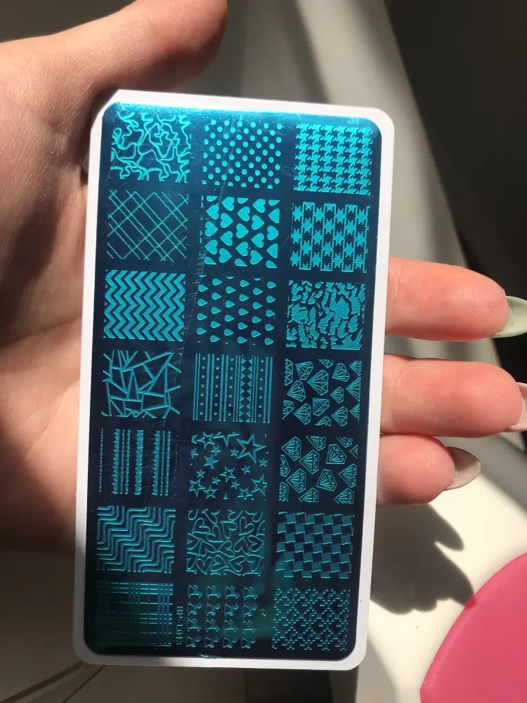 как пришла эта пластина, я другими и пользоваться перестала, очень актуальные рисунки, хорошая печать, качество порадовало.